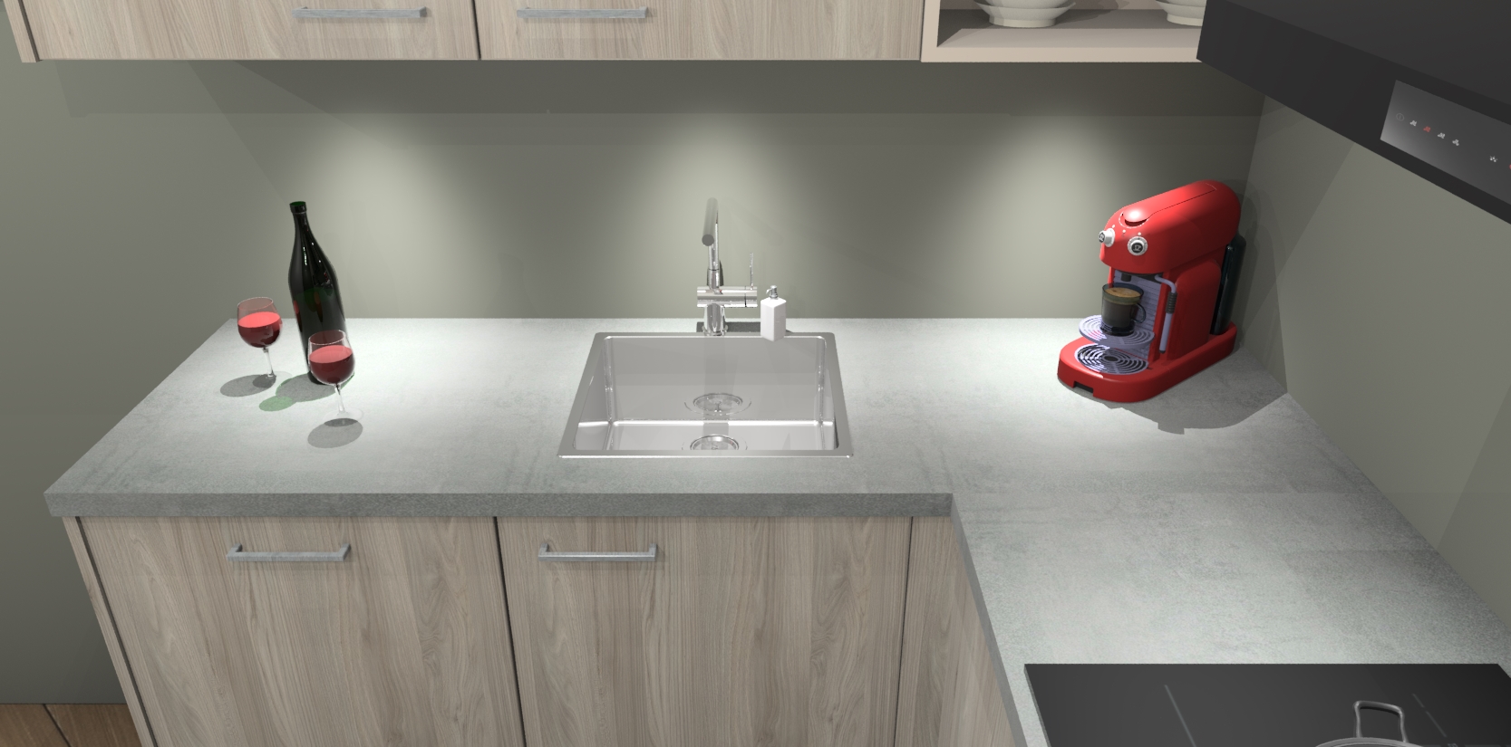 - Bij een hoekwerkblad zijn de hoeken in gevreesd en op maat gemaakt