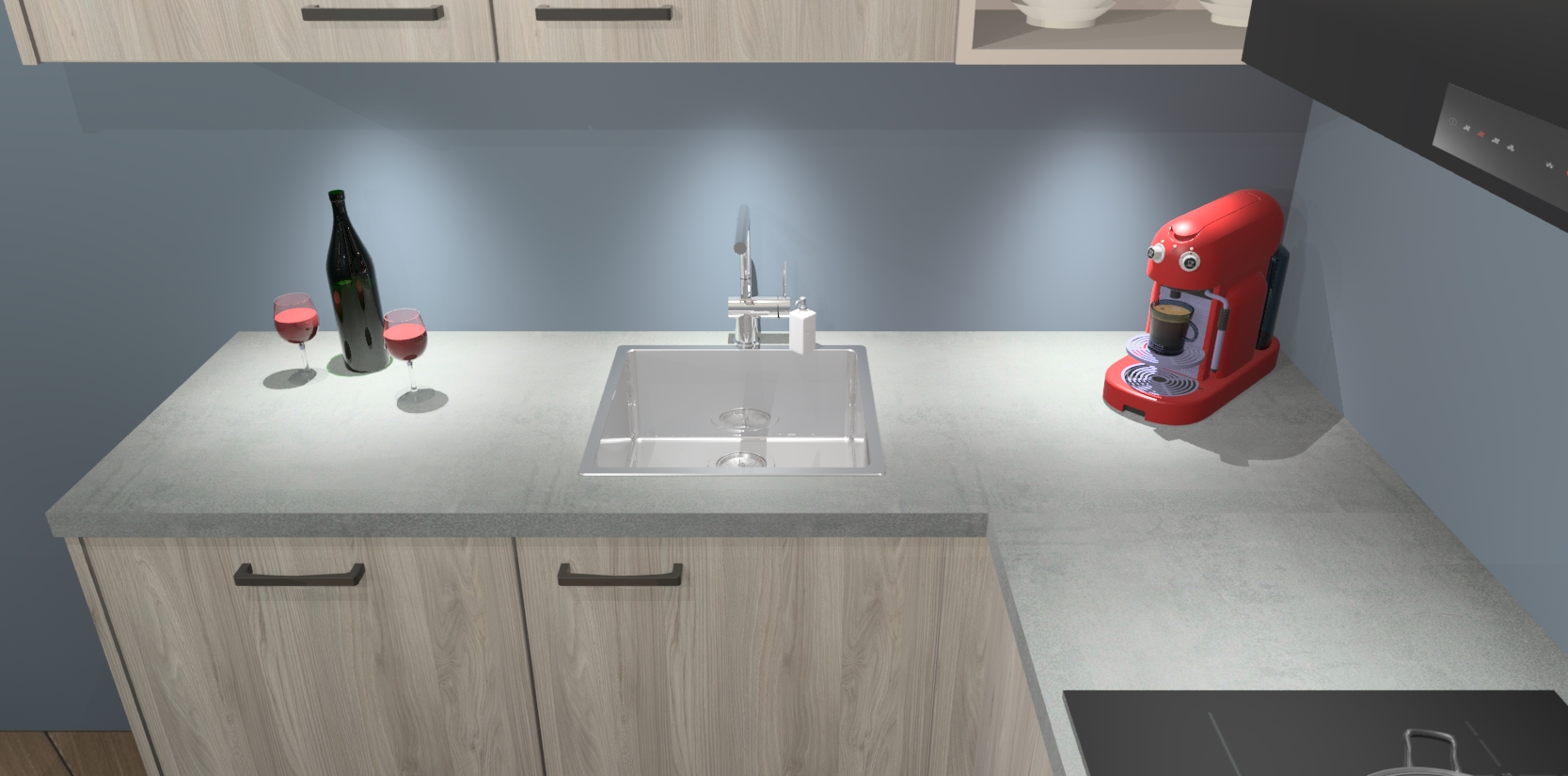 - Bij een hoekwerkblad zijn de hoeken in gevreesd en op maat gemaakt