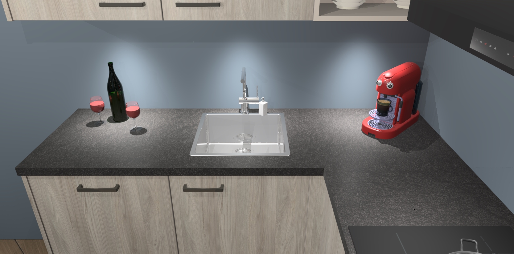 - Bij een hoekwerkblad zijn de hoeken in gevreesd en op maat gemaakt