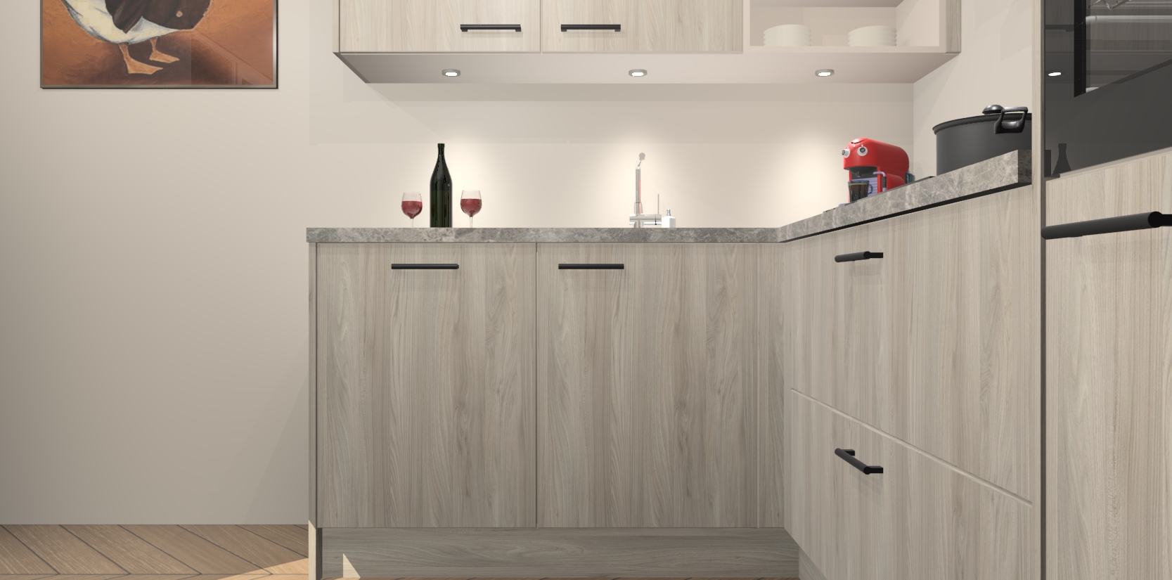 In deze box zijn alle kleuren verzameld van de deuren en werkbladen. Vraag de gratis kleurenbox aan en kijk thuis rustig verder!