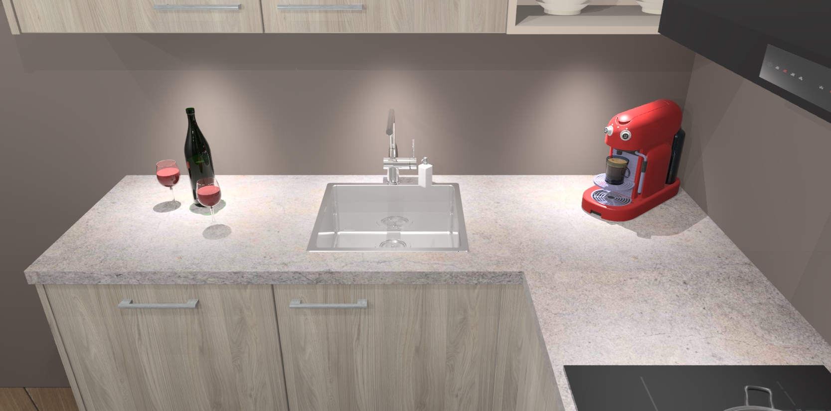 - Bij een hoekwerkblad zijn de hoeken in gevreesd en op maat gemaakt