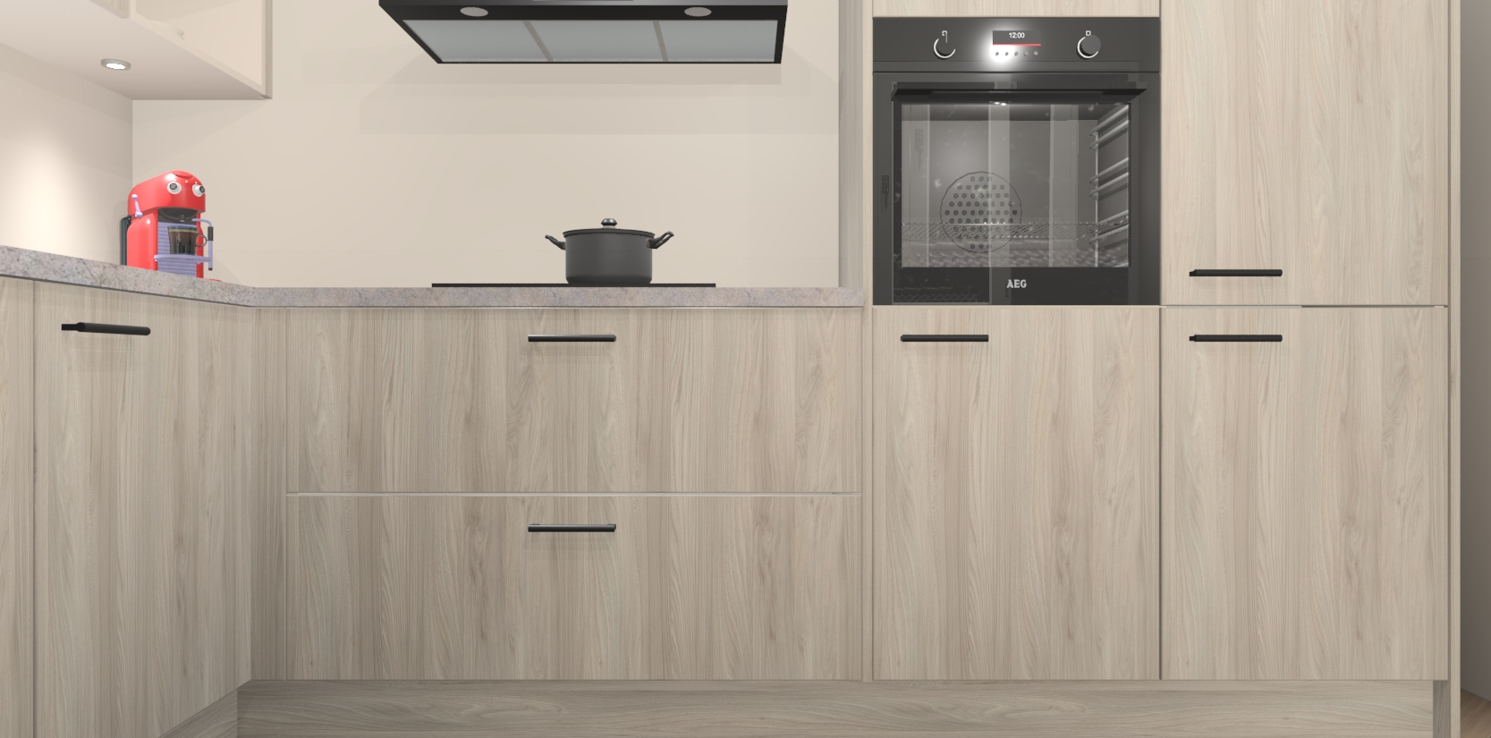 Inclusief plinten, stelpoten en werkblad