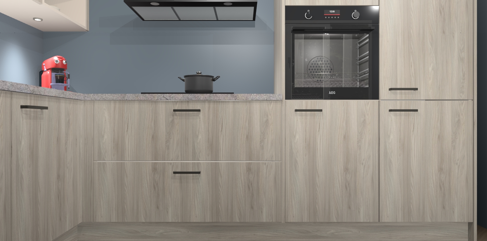 Inclusief plinten, stelpoten en werkblad
