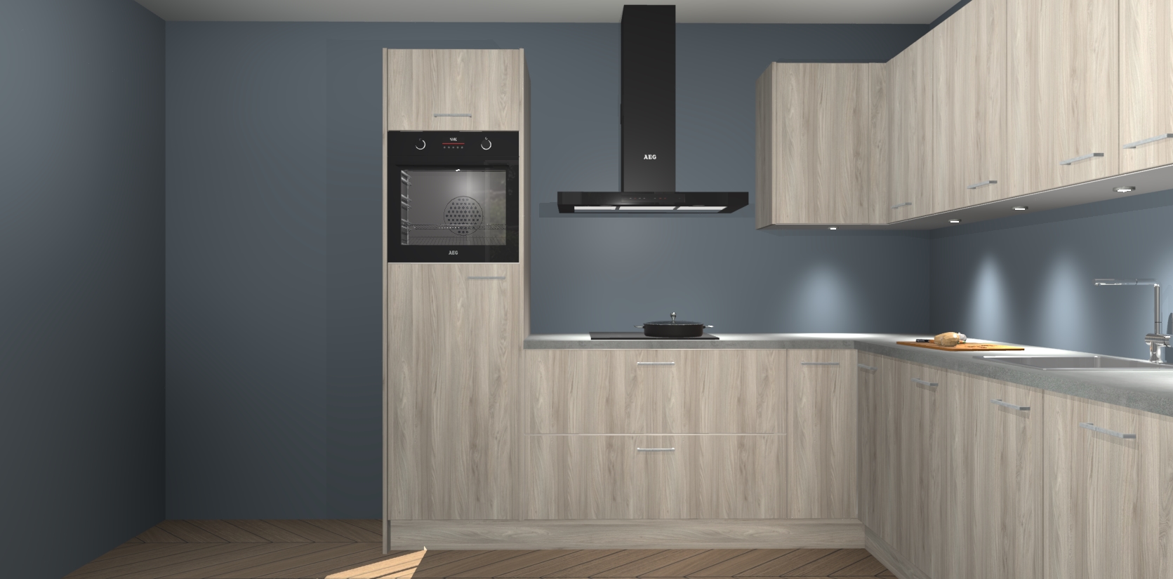 De Olm keuken Debar is uitgerust met vijf inbouwapparaten die elke kooktaak handig en efficiënt maken. Een oven, inductiekookplaat, afzuigkap, vaatwasser en koelkast zijn standaard, maar kunnen na bestelling eenvoudig worden geupgrade naar AEG. Profiteer vervolgens van de softclose deuren voor snelle toegang en geruisloze toegang.