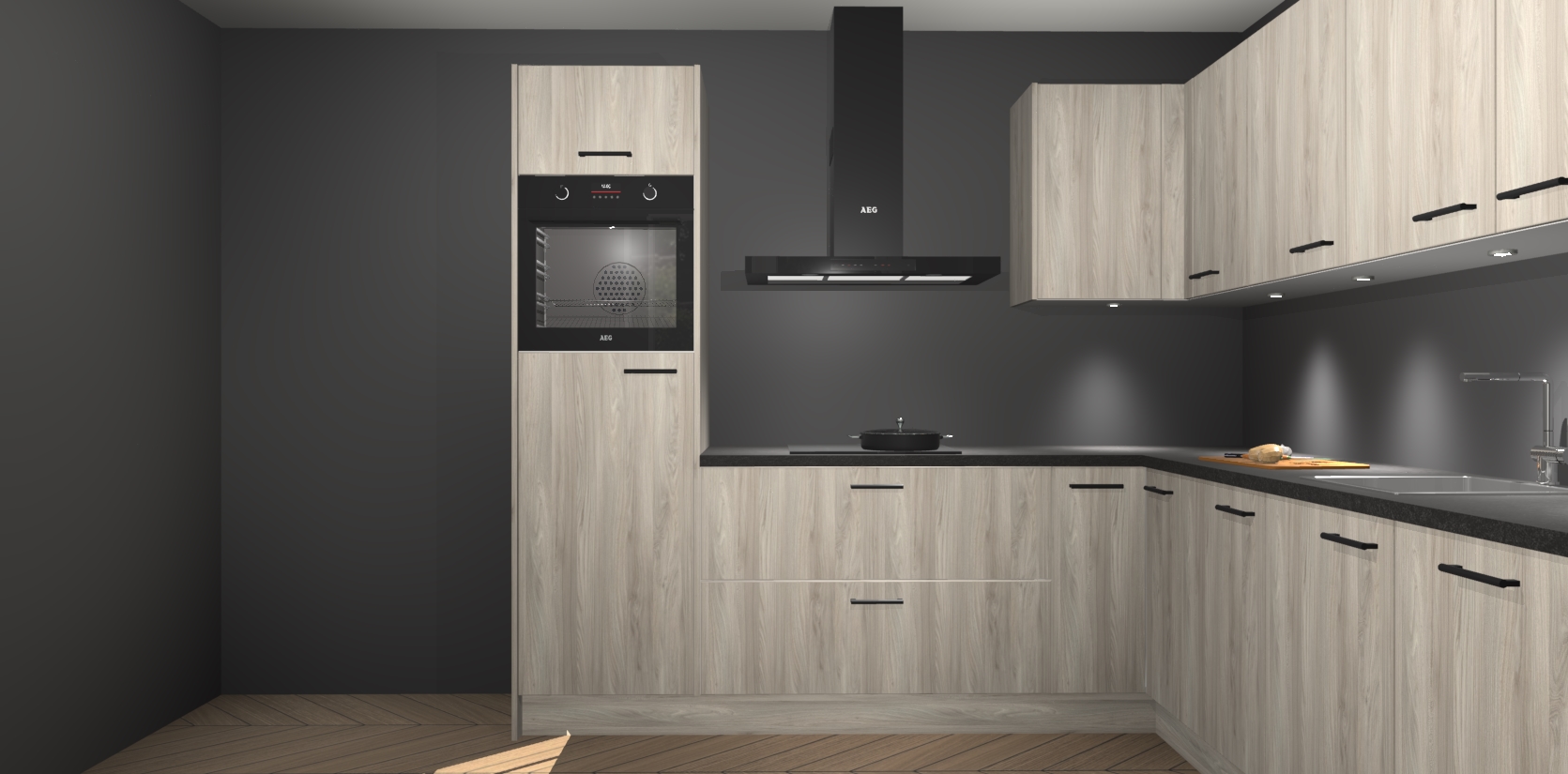 De Olm keuken Debar is uitgerust met vijf inbouwapparaten die elke kooktaak handig en efficiënt maken. Een oven, inductiekookplaat, afzuigkap, vaatwasser en koelkast zijn standaard, maar kunnen na bestelling eenvoudig worden geupgrade naar AEG. Profiteer vervolgens van de softclose deuren voor snelle toegang en geruisloze toegang.
