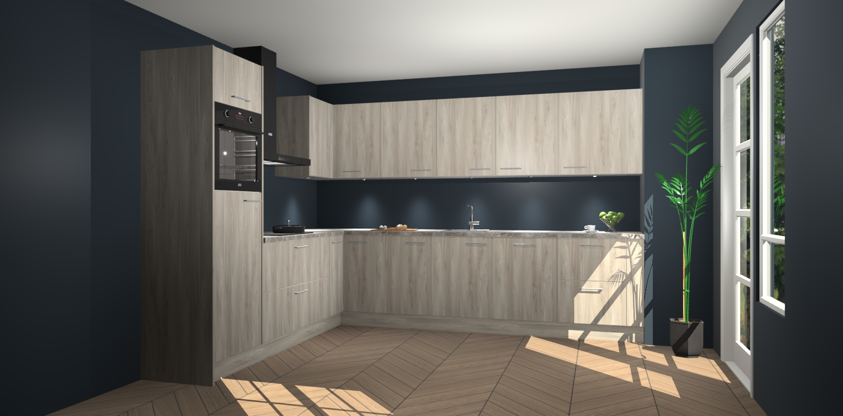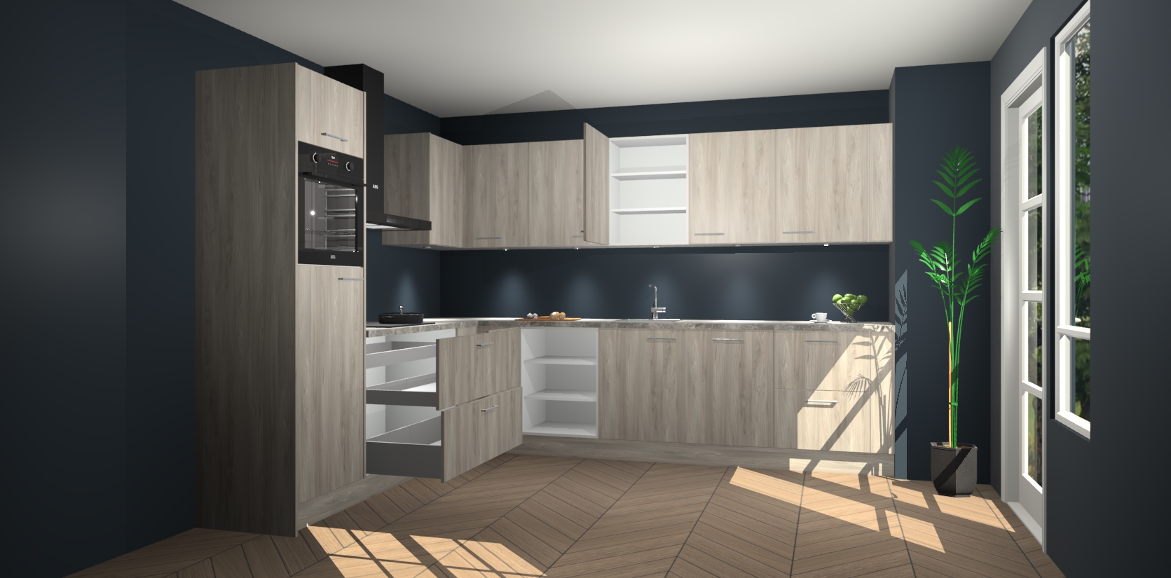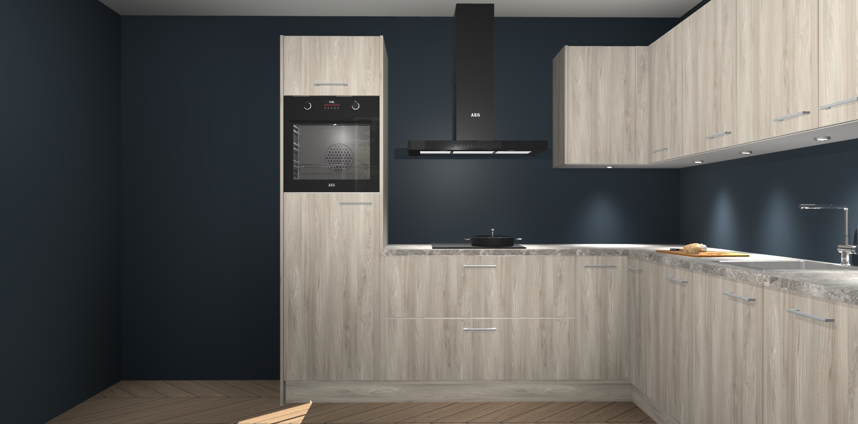 De Olm keuken Debar is uitgerust met vijf inbouwapparaten die elke kooktaak handig en efficiënt maken. Een oven, inductiekookplaat, afzuigkap, vaatwasser en koelkast zijn standaard, maar kunnen na bestelling eenvoudig worden geupgrade naar AEG. Profiteer vervolgens van de softclose deuren voor snelle toegang en geruisloze toegang.
