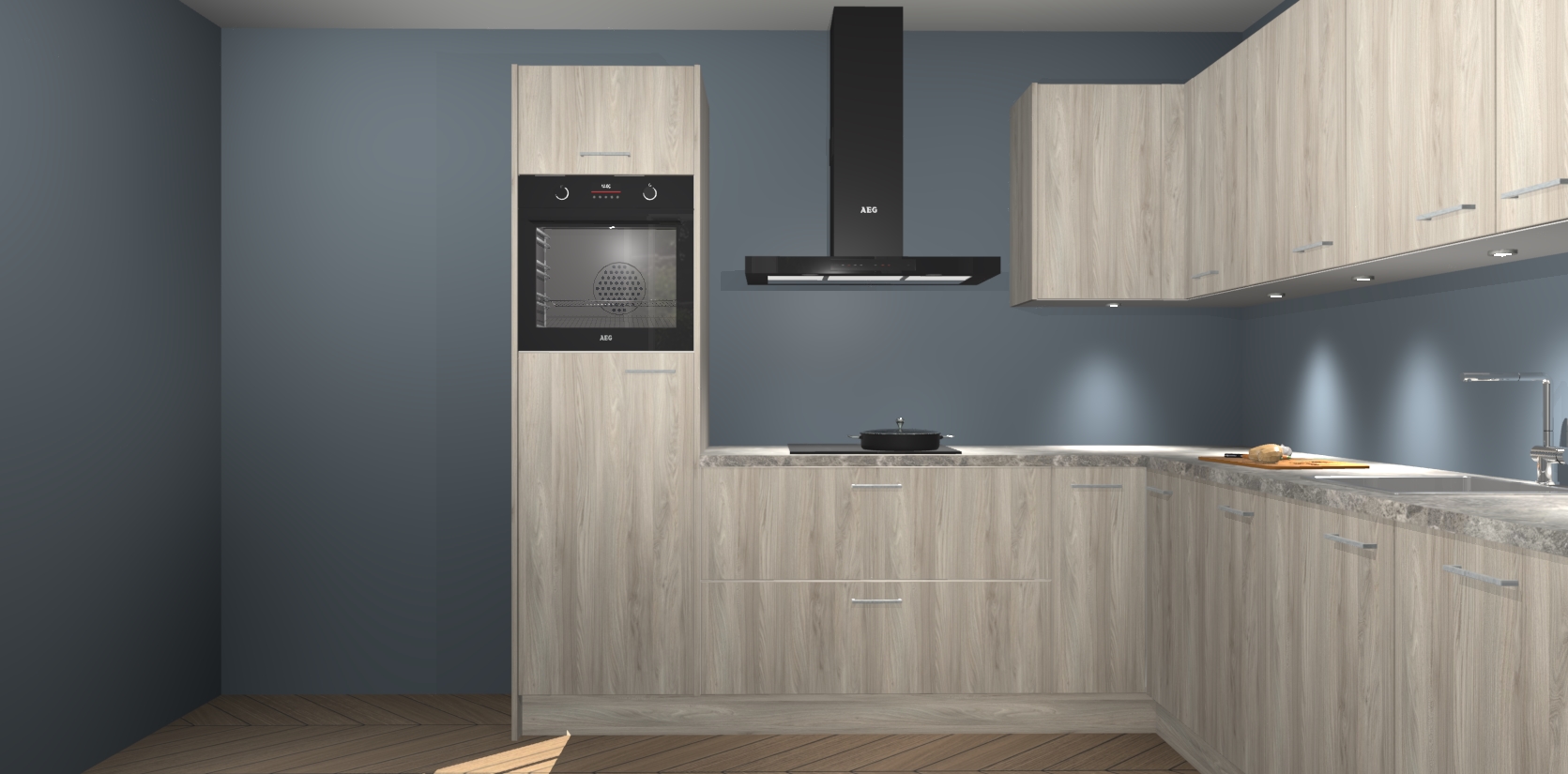 De Olm keuken Debar is uitgerust met vijf inbouwapparaten die elke kooktaak handig en efficiënt maken. Een oven, inductiekookplaat, afzuigkap, vaatwasser en koelkast zijn standaard, maar kunnen na bestelling eenvoudig worden geupgrade naar AEG. Profiteer vervolgens van de softclose deuren voor snelle toegang en geruisloze toegang.