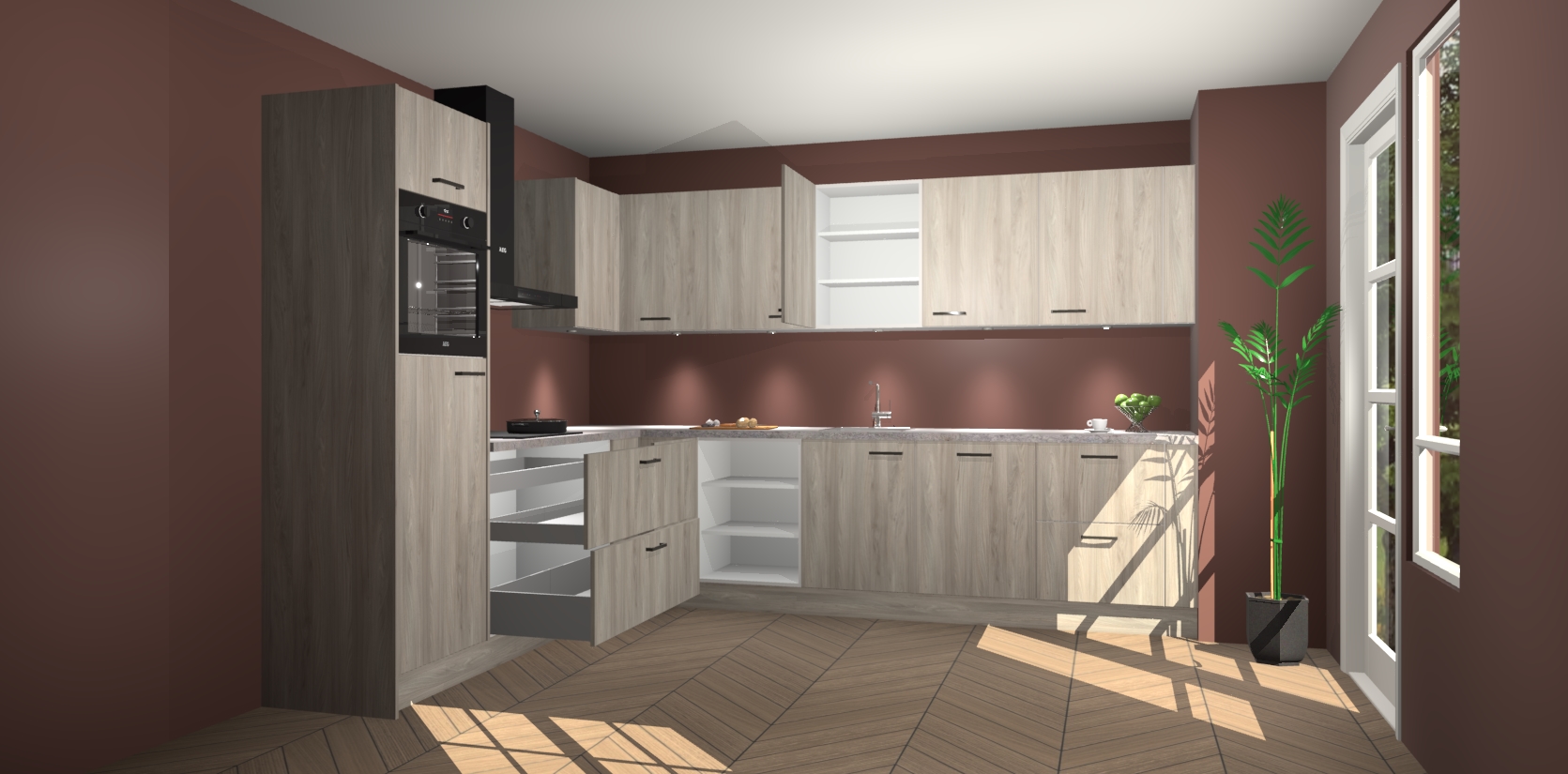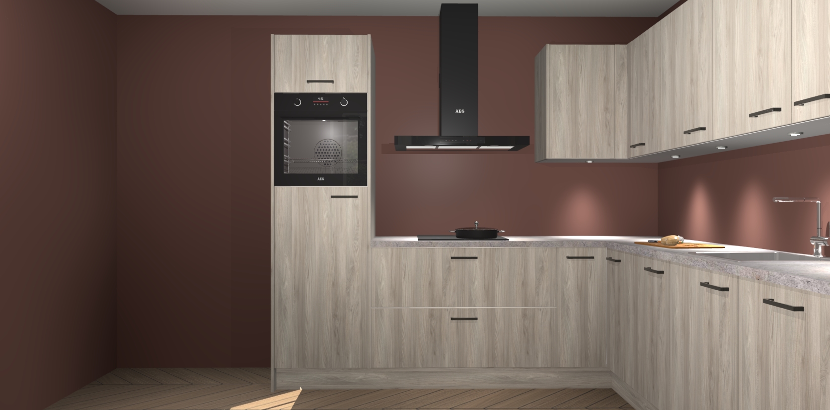 De Olm keuken Debar is uitgerust met vijf inbouwapparaten die elke kooktaak handig en efficiënt maken. Een oven, inductiekookplaat, afzuigkap, vaatwasser en koelkast zijn standaard, maar kunnen na bestelling eenvoudig worden geupgrade naar AEG. Profiteer vervolgens van de softclose deuren voor snelle toegang en geruisloze toegang.