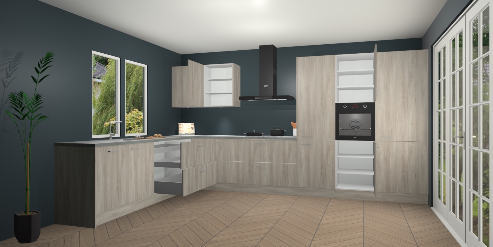 Kom dichtbij de perfecte keuken van uw dromen met de Olm keuken Debrecen. Met een prachtige houtlook en eigentijds ontwerp, straalt deze keuken warmte en sfeer uit. Of u nu liefhebber bent van traditionele of moderne stijlen, er is genoeg ruimte om aan al uw behoeften te voldoen.