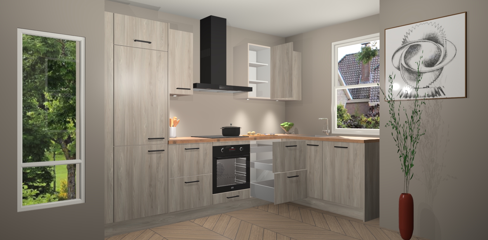 De Olm keuken Geneve is precies wat u nodig heeft als u op zoek bent naar modern design, versmolten met tijdloze schoonheid. De strakke afwerking voegt klasse toe terwijl het toch een uitnodigende sfeer behoudt; zeker om zowel gasten als uzelf te inspireren om in stijl te gaan koken! En nog beter, het zal uw budget niet breken - dus waarom wachten? Met de Olm keuken Geneve bent u verzekerd van kwaliteit zonder in te leveren op de prijs!