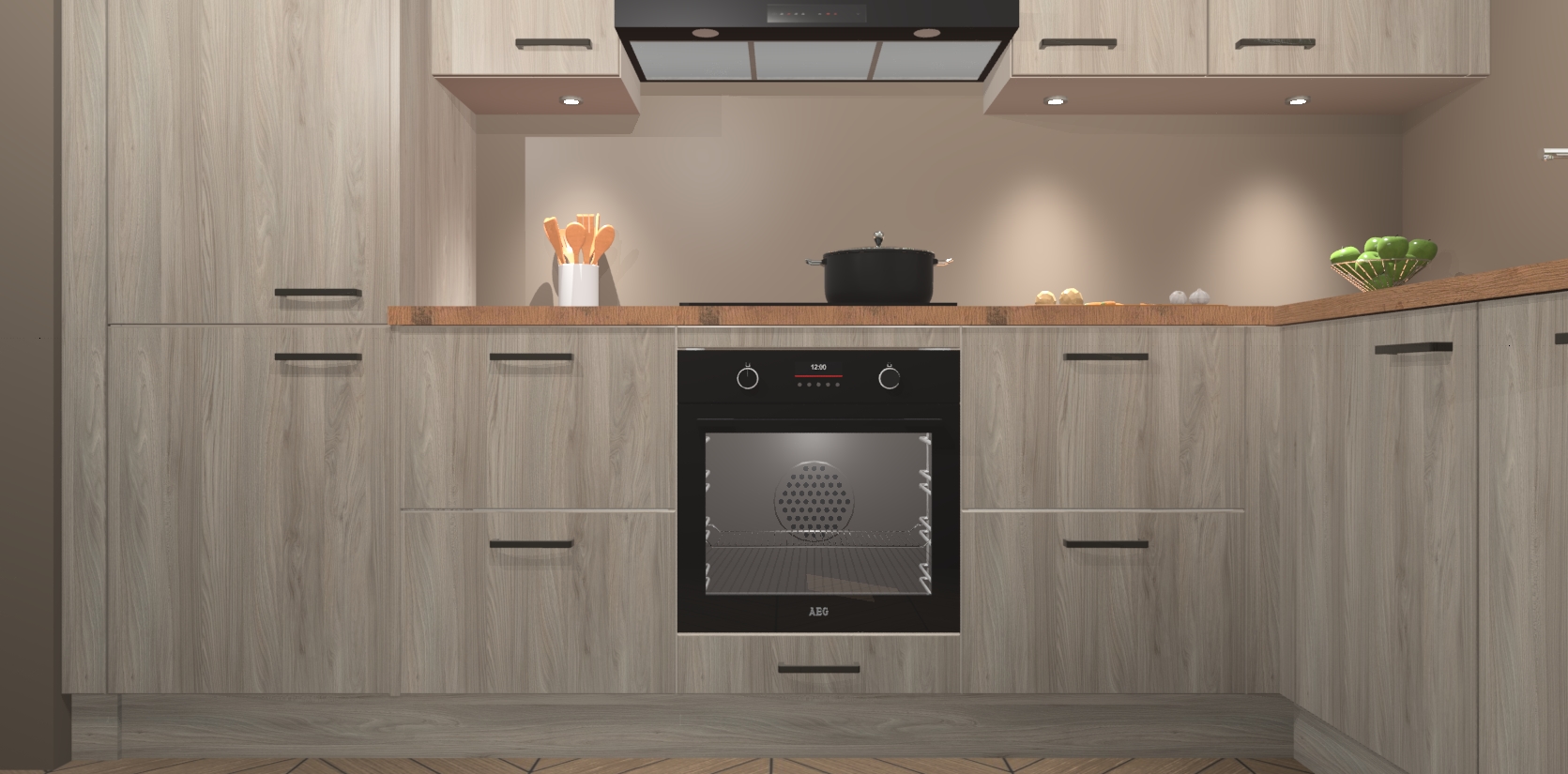 De Olm keuken Geneve is uitgerust met 5 inbouwapparaten - een oven, inductiekookplaat, afzuigkap, vaatwasser en koelkast - voor al uw kook- en bewaarbehoeftes. U kunt deze apparaten desgewenst eenvoudig upgraden naar AEG of de oven omruilen voor een combimagnetron na het plaatsen van uw bestelling. En met de soft close deuren, voldoende opbergruimte en kasten die voorgemonteerd worden geleverd, bent u in een mum van tijd klaar om heerlijke maaltijden te bereiden!