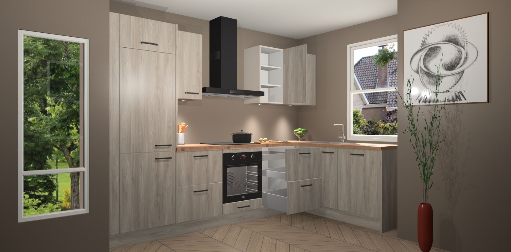 De Olm keuken Geneve is precies wat u nodig heeft als u op zoek bent naar modern design, versmolten met tijdloze schoonheid. De strakke afwerking voegt klasse toe terwijl het toch een uitnodigende sfeer behoudt; zeker om zowel gasten als uzelf te inspireren om in stijl te gaan koken! En nog beter, het zal uw budget niet breken - dus waarom wachten? Met de Olm keuken Geneve bent u verzekerd van kwaliteit zonder in te leveren op de prijs!