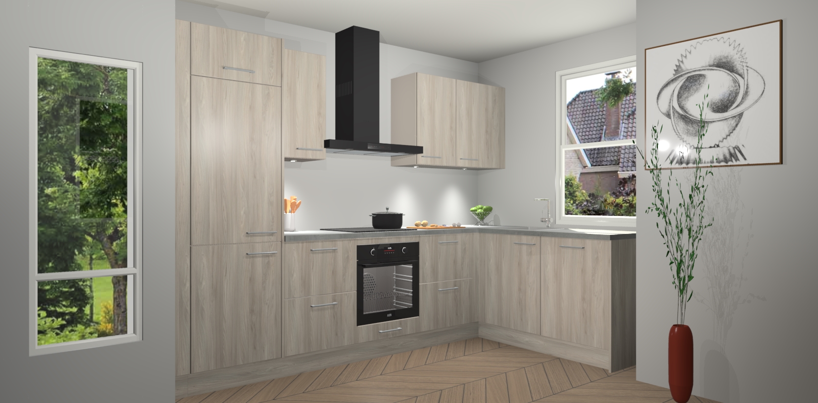 De Olm keuken Geneve is precies wat u nodig heeft als u op zoek bent naar modern design, versmolten met tijdloze schoonheid. De strakke afwerking voegt klasse toe terwijl het toch een uitnodigende sfeer behoudt; zeker om zowel gasten als uzelf te inspireren om in stijl te gaan koken! En nog beter, het zal uw budget niet breken - dus waarom wachten? Met de Olm keuken Geneve bent u verzekerd van kwaliteit zonder in te leveren op de prijs!