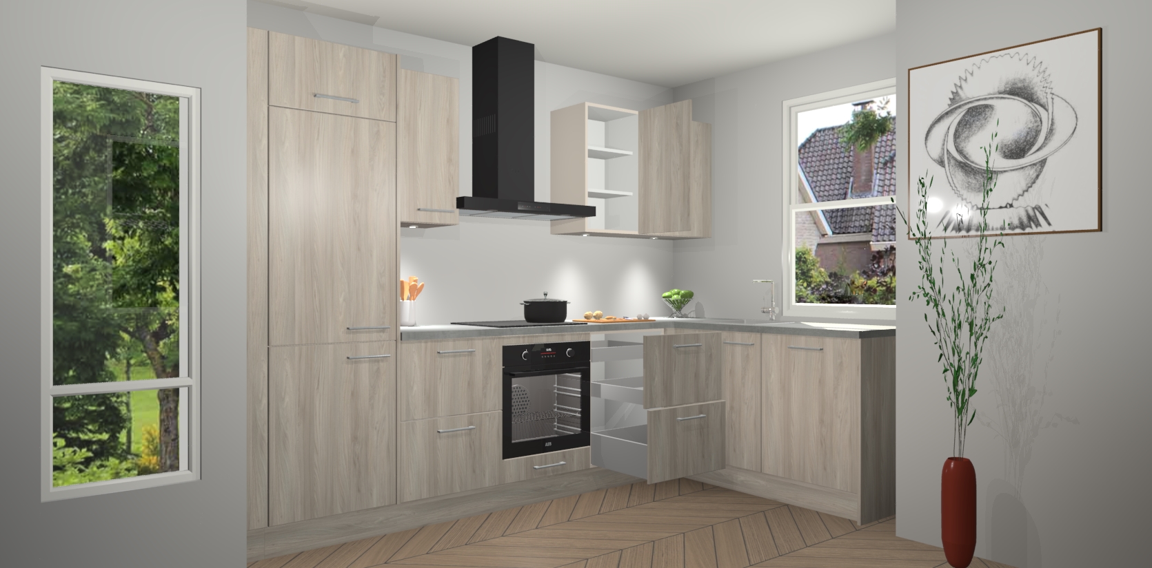 De Olm keuken Geneve is uitgerust met 5 inbouwapparaten - een oven, inductiekookplaat, afzuigkap, vaatwasser en koelkast - voor al uw kook- en bewaarbehoeftes. U kunt deze apparaten desgewenst eenvoudig upgraden naar AEG of de oven omruilen voor een combimagnetron na het plaatsen van uw bestelling. En met de soft close deuren, voldoende opbergruimte en kasten die voorgemonteerd worden geleverd, bent u in een mum van tijd klaar om heerlijke maaltijden te bereiden!