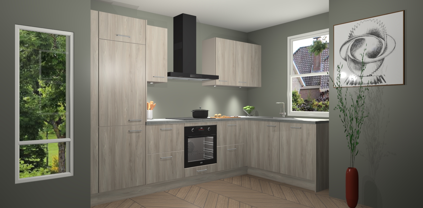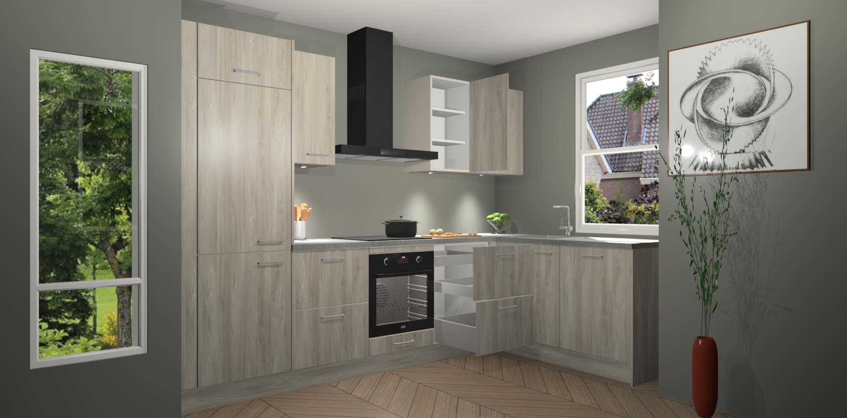 De Olm keuken Geneve is uitgerust met 5 inbouwapparaten - een oven, inductiekookplaat, afzuigkap, vaatwasser en koelkast - voor al uw kook- en bewaarbehoeftes. U kunt deze apparaten desgewenst eenvoudig upgraden naar AEG of de oven omruilen voor een combimagnetron na het plaatsen van uw bestelling. En met de soft close deuren, voldoende opbergruimte en kasten die voorgemonteerd worden geleverd, bent u in een mum van tijd klaar om heerlijke maaltijden te bereiden!