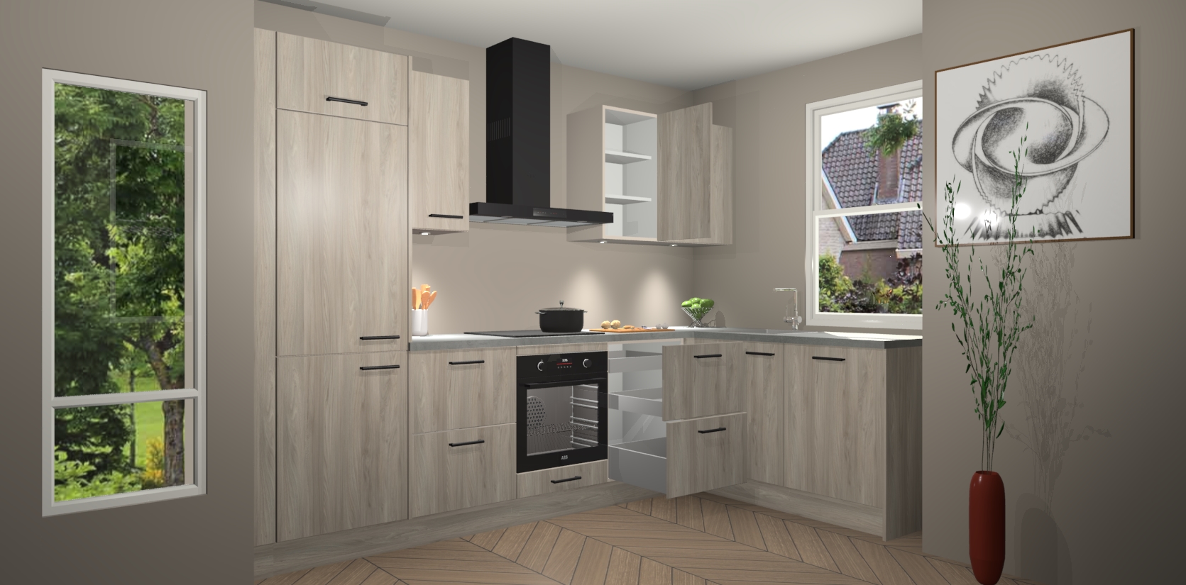 De Olm keuken Geneve is precies wat u nodig heeft als u op zoek bent naar modern design, versmolten met tijdloze schoonheid. De strakke afwerking voegt klasse toe terwijl het toch een uitnodigende sfeer behoudt; zeker om zowel gasten als uzelf te inspireren om in stijl te gaan koken! En nog beter, het zal uw budget niet breken - dus waarom wachten? Met de Olm keuken Geneve bent u verzekerd van kwaliteit zonder in te leveren op de prijs!