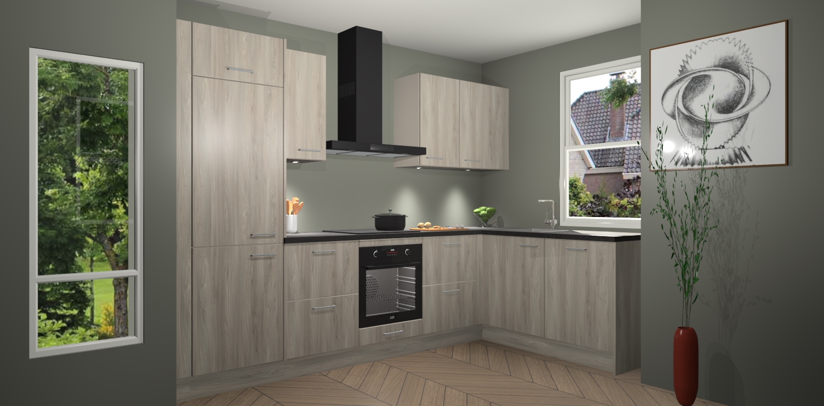 De Olm keuken Geneve is precies wat u nodig heeft als u op zoek bent naar modern design, versmolten met tijdloze schoonheid. De strakke afwerking voegt klasse toe terwijl het toch een uitnodigende sfeer behoudt; zeker om zowel gasten als uzelf te inspireren om in stijl te gaan koken! En nog beter, het zal uw budget niet breken - dus waarom wachten? Met de Olm keuken Geneve bent u verzekerd van kwaliteit zonder in te leveren op de prijs!