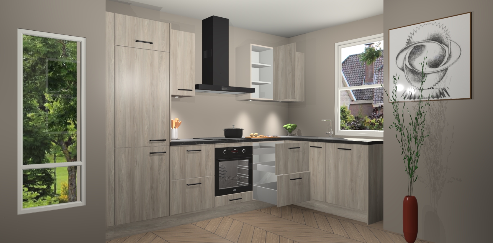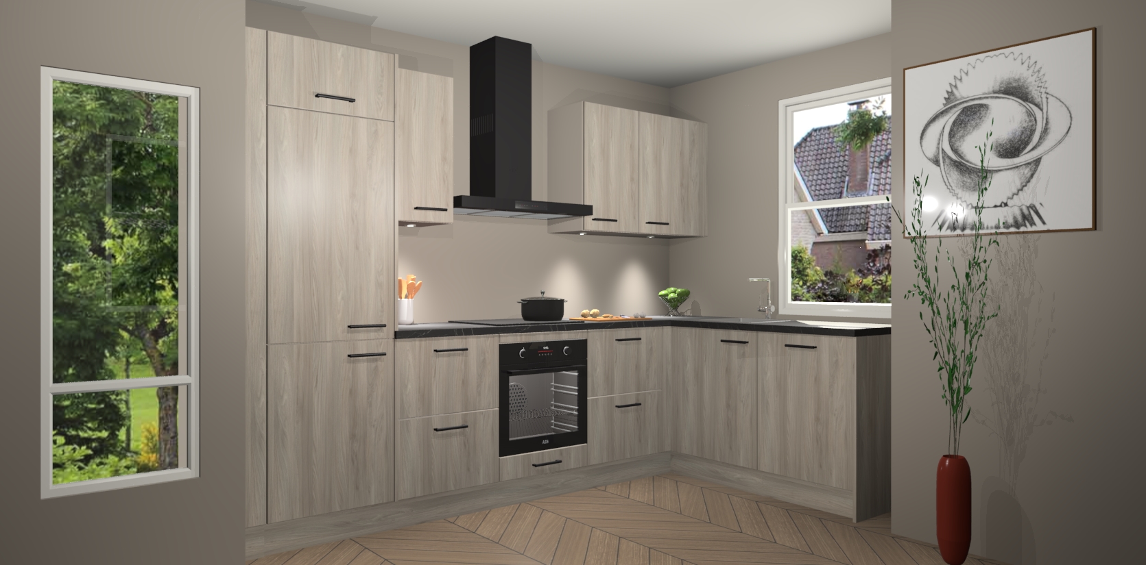 De Olm keuken Geneve is precies wat u nodig heeft als u op zoek bent naar modern design, versmolten met tijdloze schoonheid. De strakke afwerking voegt klasse toe terwijl het toch een uitnodigende sfeer behoudt; zeker om zowel gasten als uzelf te inspireren om in stijl te gaan koken! En nog beter, het zal uw budget niet breken - dus waarom wachten? Met de Olm keuken Geneve bent u verzekerd van kwaliteit zonder in te leveren op de prijs!