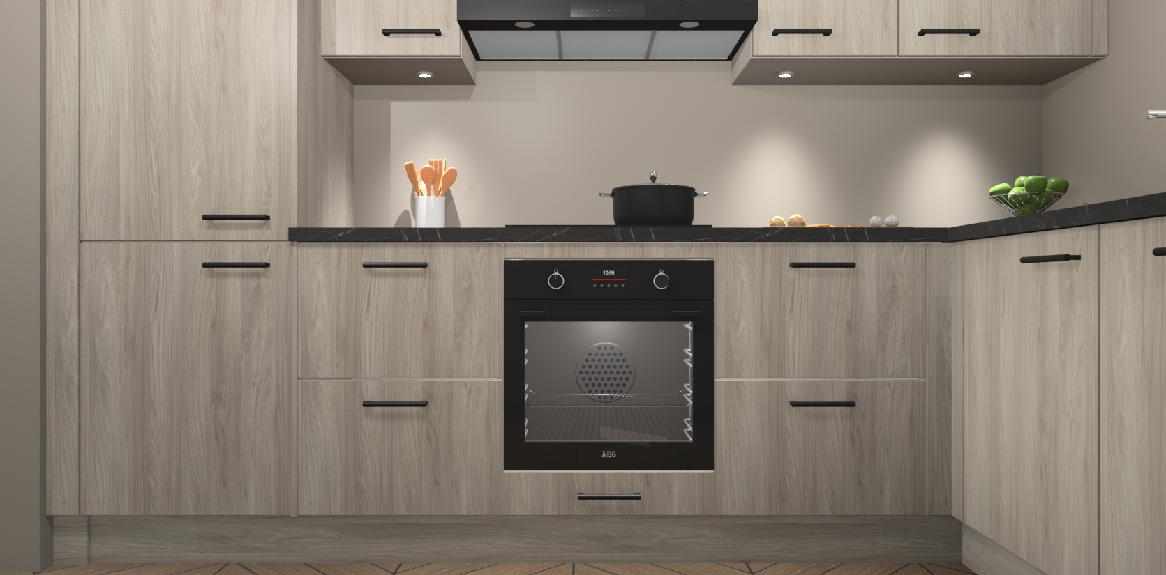 De Olm keuken Geneve is uitgerust met 5 inbouwapparaten - een oven, inductiekookplaat, afzuigkap, vaatwasser en koelkast - voor al uw kook- en bewaarbehoeftes. U kunt deze apparaten desgewenst eenvoudig upgraden naar AEG of de oven omruilen voor een combimagnetron na het plaatsen van uw bestelling. En met de soft close deuren, voldoende opbergruimte en kasten die voorgemonteerd worden geleverd, bent u in een mum van tijd klaar om heerlijke maaltijden te bereiden!