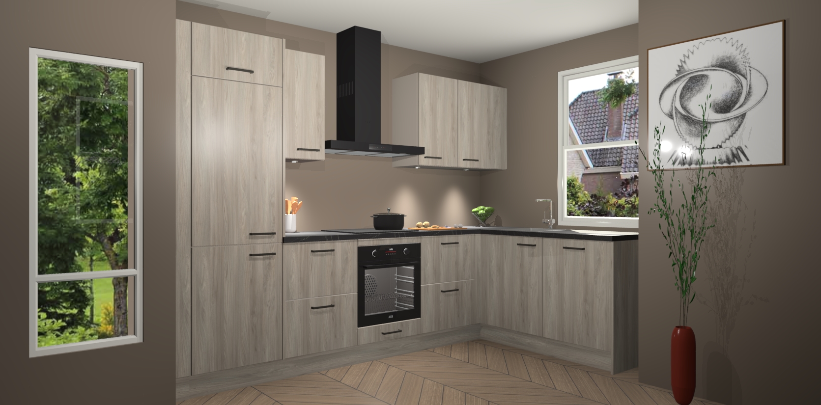 De Olm keuken Geneve is precies wat u nodig heeft als u op zoek bent naar modern design, versmolten met tijdloze schoonheid. De strakke afwerking voegt klasse toe terwijl het toch een uitnodigende sfeer behoudt; zeker om zowel gasten als uzelf te inspireren om in stijl te gaan koken! En nog beter, het zal uw budget niet breken - dus waarom wachten? Met de Olm keuken Geneve bent u verzekerd van kwaliteit zonder in te leveren op de prijs!