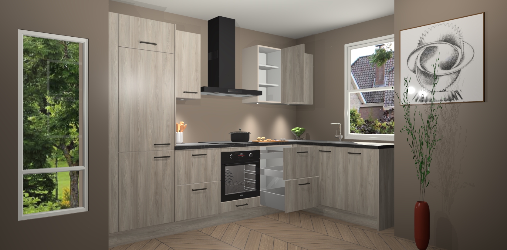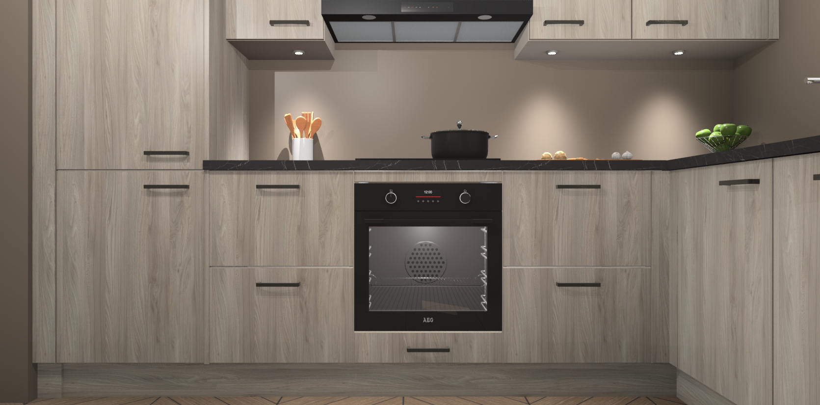 De Olm keuken Geneve is uitgerust met 5 inbouwapparaten - een oven, inductiekookplaat, afzuigkap, vaatwasser en koelkast - voor al uw kook- en bewaarbehoeftes. U kunt deze apparaten desgewenst eenvoudig upgraden naar AEG of de oven omruilen voor een combimagnetron na het plaatsen van uw bestelling. En met de soft close deuren, voldoende opbergruimte en kasten die voorgemonteerd worden geleverd, bent u in een mum van tijd klaar om heerlijke maaltijden te bereiden!