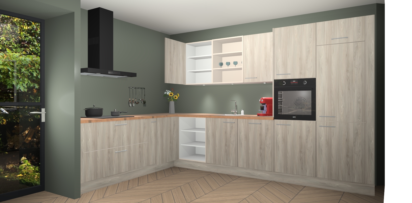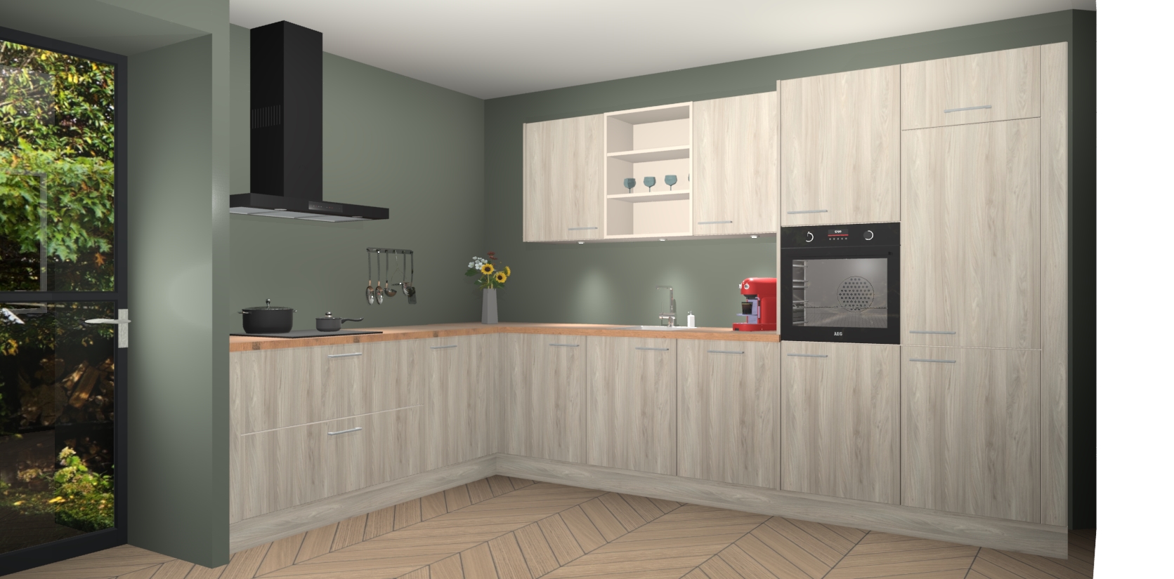 De Olm keuken Gotenburg is zo ontworpen dat u alle mogelijke vormen van opslagruimte kunt genieten. Bovendien heeft u meteen toegang tot vijf ingebouwde apparaten: een oven, inductiekookplaat, afzuigkap, vaatwasser en koelkast. Gewoon upgraden naar AEG na bestelling? Dit kan heel gemakkelijk worden geregeld. De deuren sluiten zacht dankzij zachtsluitende scharnieren en ze houden warmte vast terwijl ze uitzonderlijk stil blijven wanneer ze worden geopend of gesloten.