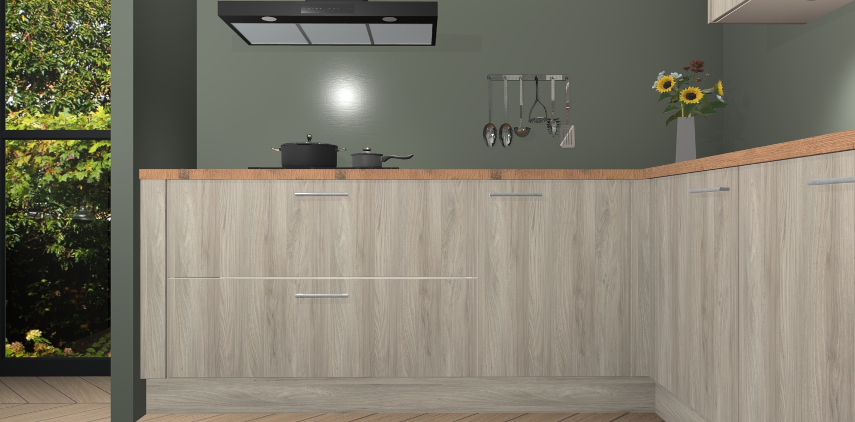 Inclusief plinten, stelpoten en werkblad