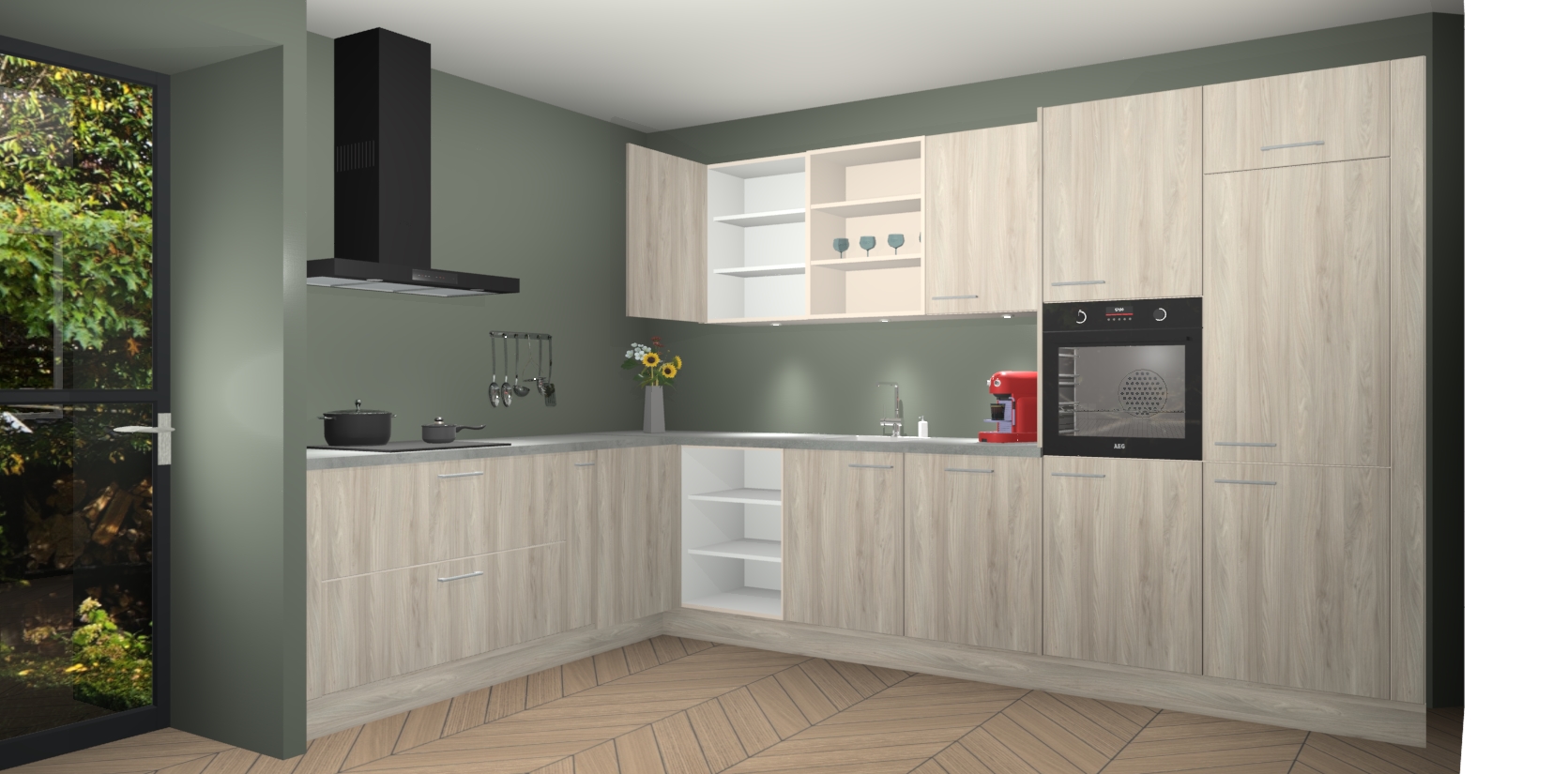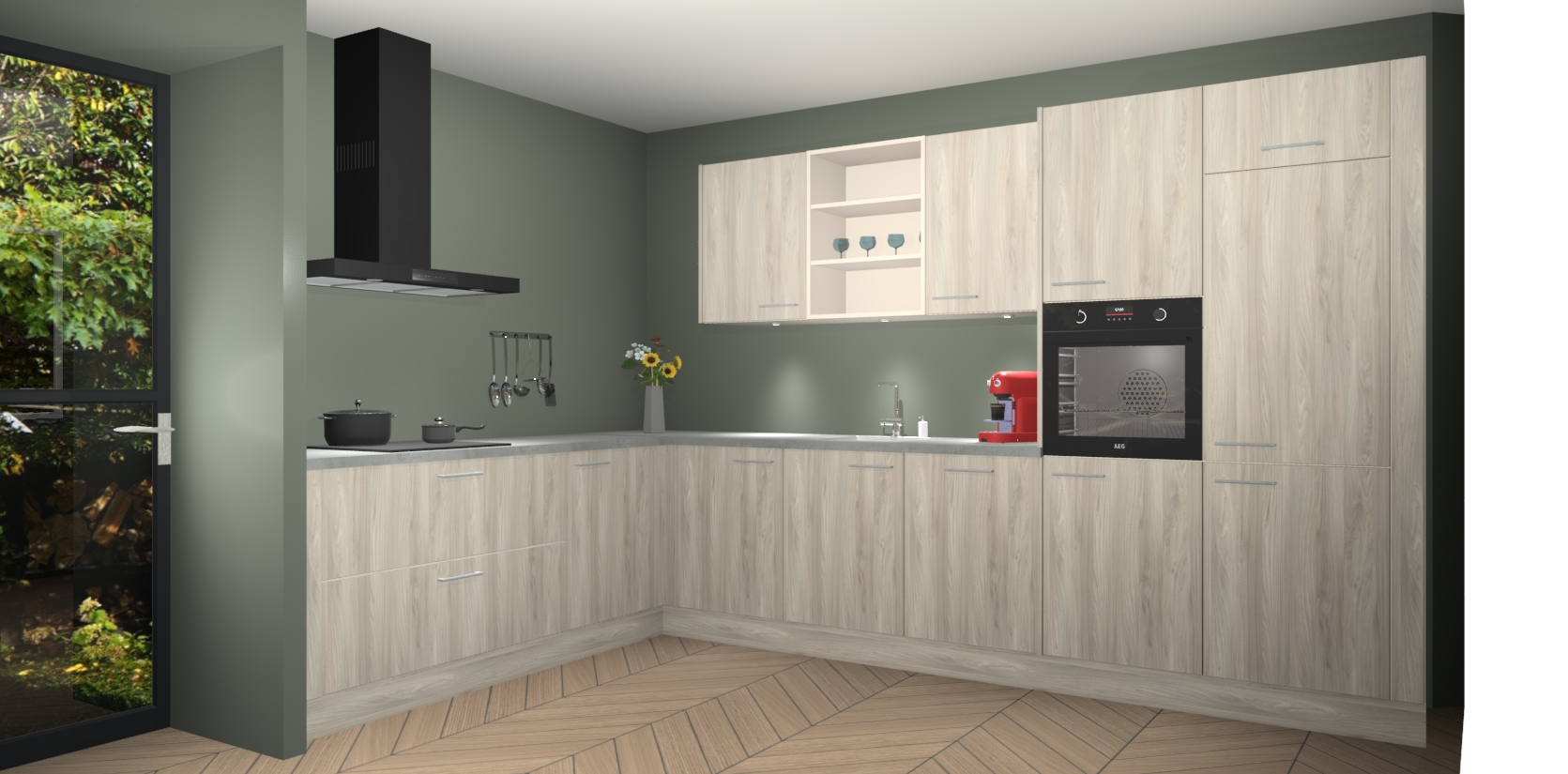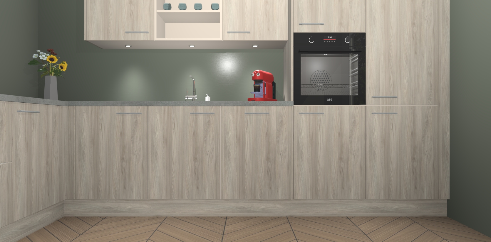 De Olm keuken Gotenburg is zo ontworpen dat u alle mogelijke vormen van opslagruimte kunt genieten. Bovendien heeft u meteen toegang tot vijf ingebouwde apparaten: een oven, inductiekookplaat, afzuigkap, vaatwasser en koelkast. Gewoon upgraden naar AEG na bestelling? Dit kan heel gemakkelijk worden geregeld. De deuren sluiten zacht dankzij zachtsluitende scharnieren en ze houden warmte vast terwijl ze uitzonderlijk stil blijven wanneer ze worden geopend of gesloten.