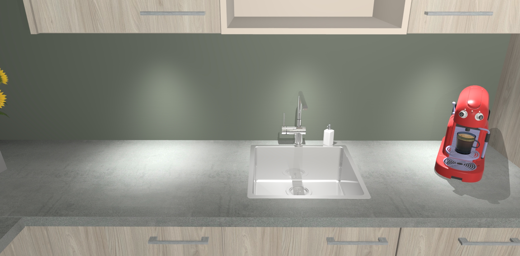 - De spoelbak is nog niet in gevreesd. Dit dient tijdens het werk gedaan te worden