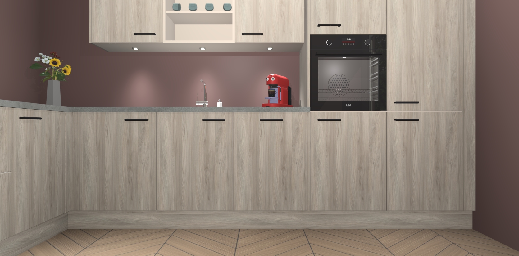 De Olm keuken Gotenburg is zo ontworpen dat u alle mogelijke vormen van opslagruimte kunt genieten. Bovendien heeft u meteen toegang tot vijf ingebouwde apparaten: een oven, inductiekookplaat, afzuigkap, vaatwasser en koelkast. Gewoon upgraden naar AEG na bestelling? Dit kan heel gemakkelijk worden geregeld. De deuren sluiten zacht dankzij zachtsluitende scharnieren en ze houden warmte vast terwijl ze uitzonderlijk stil blijven wanneer ze worden geopend of gesloten.