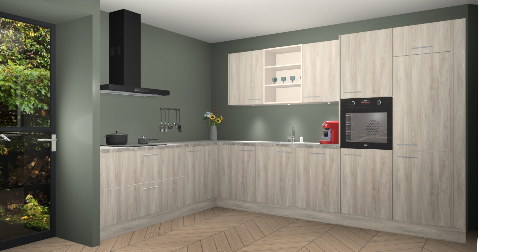 De Olm keuken Gotenburg is zo ontworpen dat u alle mogelijke vormen van opslagruimte kunt genieten. Bovendien heeft u meteen toegang tot vijf ingebouwde apparaten: een oven, inductiekookplaat, afzuigkap, vaatwasser en koelkast. Gewoon upgraden naar AEG na bestelling? Dit kan heel gemakkelijk worden geregeld. De deuren sluiten zacht dankzij zachtsluitende scharnieren en ze houden warmte vast terwijl ze uitzonderlijk stil blijven wanneer ze worden geopend of gesloten.