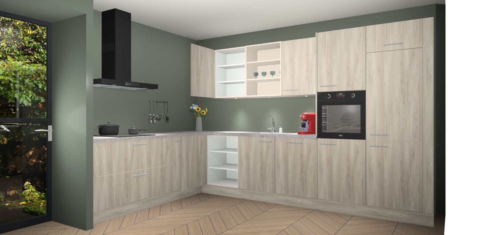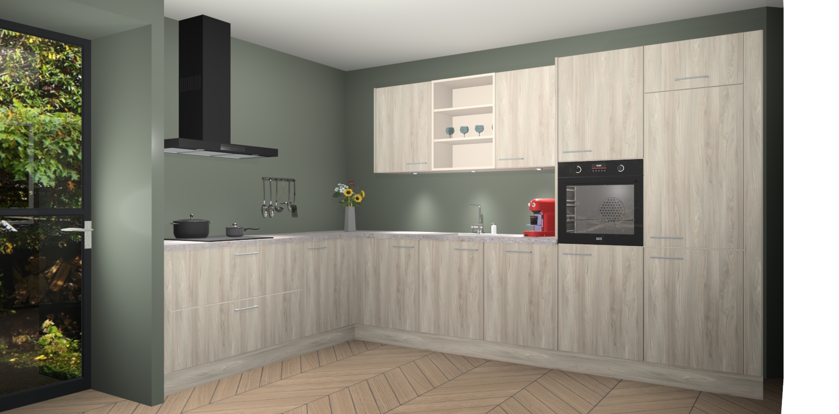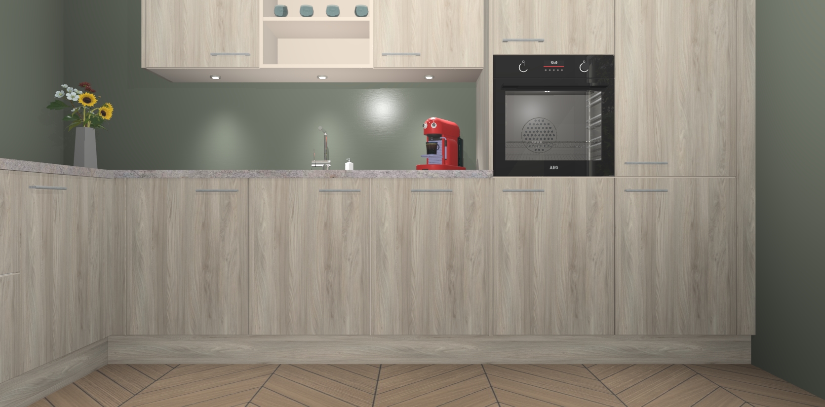 De Olm keuken Gotenburg is zo ontworpen dat u alle mogelijke vormen van opslagruimte kunt genieten. Bovendien heeft u meteen toegang tot vijf ingebouwde apparaten: een oven, inductiekookplaat, afzuigkap, vaatwasser en koelkast. Gewoon upgraden naar AEG na bestelling? Dit kan heel gemakkelijk worden geregeld. De deuren sluiten zacht dankzij zachtsluitende scharnieren en ze houden warmte vast terwijl ze uitzonderlijk stil blijven wanneer ze worden geopend of gesloten.