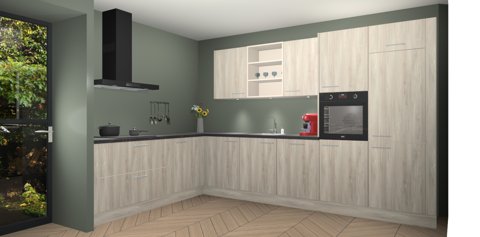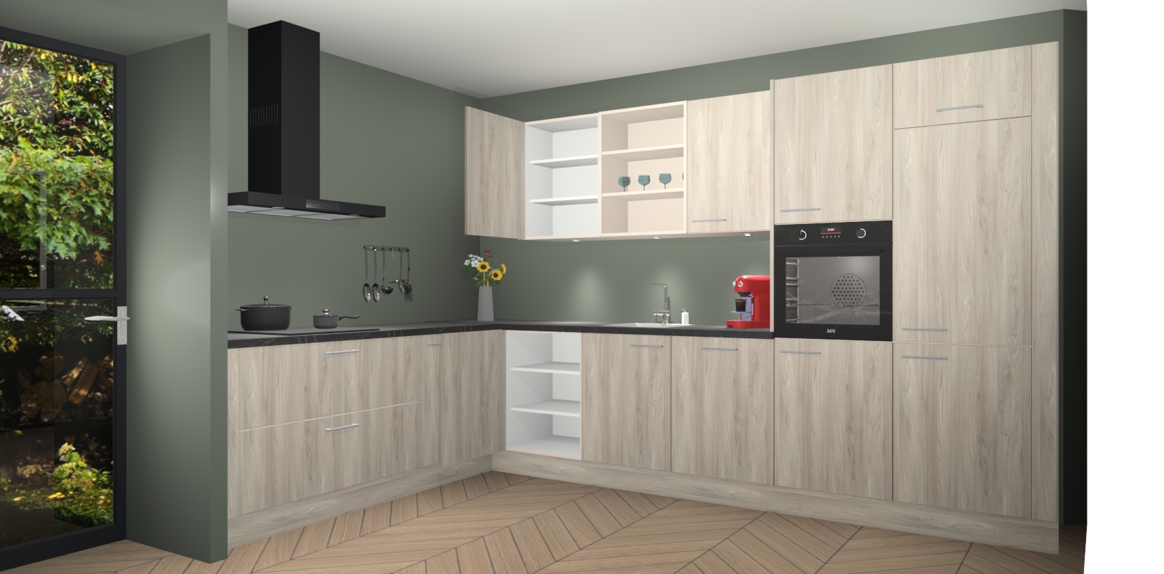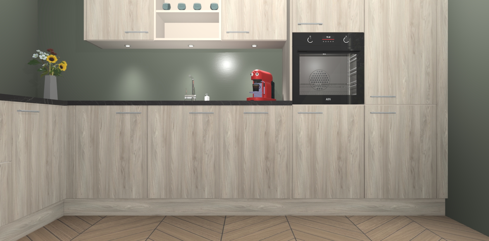 De Olm keuken Gotenburg is zo ontworpen dat u alle mogelijke vormen van opslagruimte kunt genieten. Bovendien heeft u meteen toegang tot vijf ingebouwde apparaten: een oven, inductiekookplaat, afzuigkap, vaatwasser en koelkast. Gewoon upgraden naar AEG na bestelling? Dit kan heel gemakkelijk worden geregeld. De deuren sluiten zacht dankzij zachtsluitende scharnieren en ze houden warmte vast terwijl ze uitzonderlijk stil blijven wanneer ze worden geopend of gesloten.