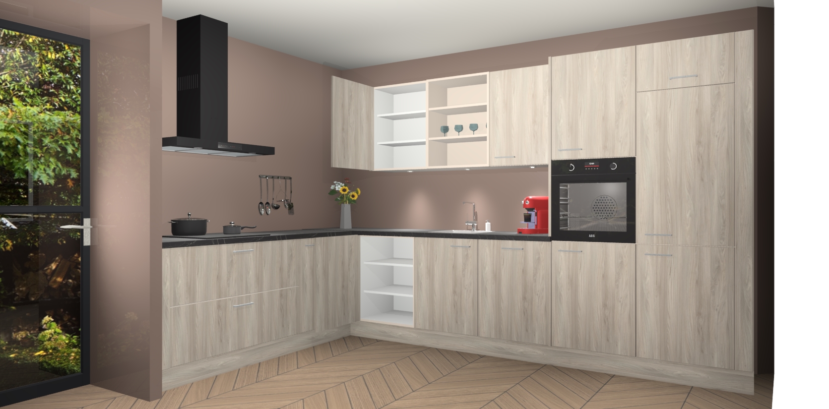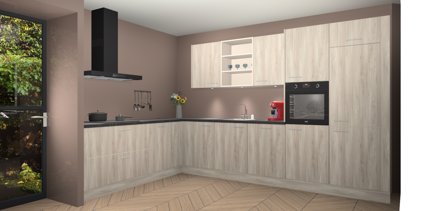 De Olm keuken Gotenburg is zo ontworpen dat u alle mogelijke vormen van opslagruimte kunt genieten. Bovendien heeft u meteen toegang tot vijf ingebouwde apparaten: een oven, inductiekookplaat, afzuigkap, vaatwasser en koelkast. Gewoon upgraden naar AEG na bestelling? Dit kan heel gemakkelijk worden geregeld. De deuren sluiten zacht dankzij zachtsluitende scharnieren en ze houden warmte vast terwijl ze uitzonderlijk stil blijven wanneer ze worden geopend of gesloten.