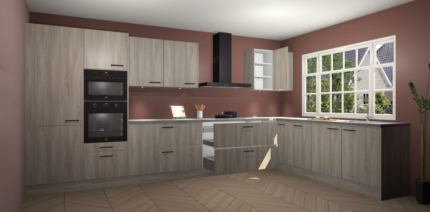 Kom dichtbij de perfecte keuken van uw dromen met de olm keuken Graz. Met een prachtige houtlook en eigentijds ontwerp, straalt deze keuken warmte en sfeer uit. Of u nu liefhebber bent van traditionele of moderne stijlen, er is genoeg ruimte om aan al uw behoeften te voldoen.