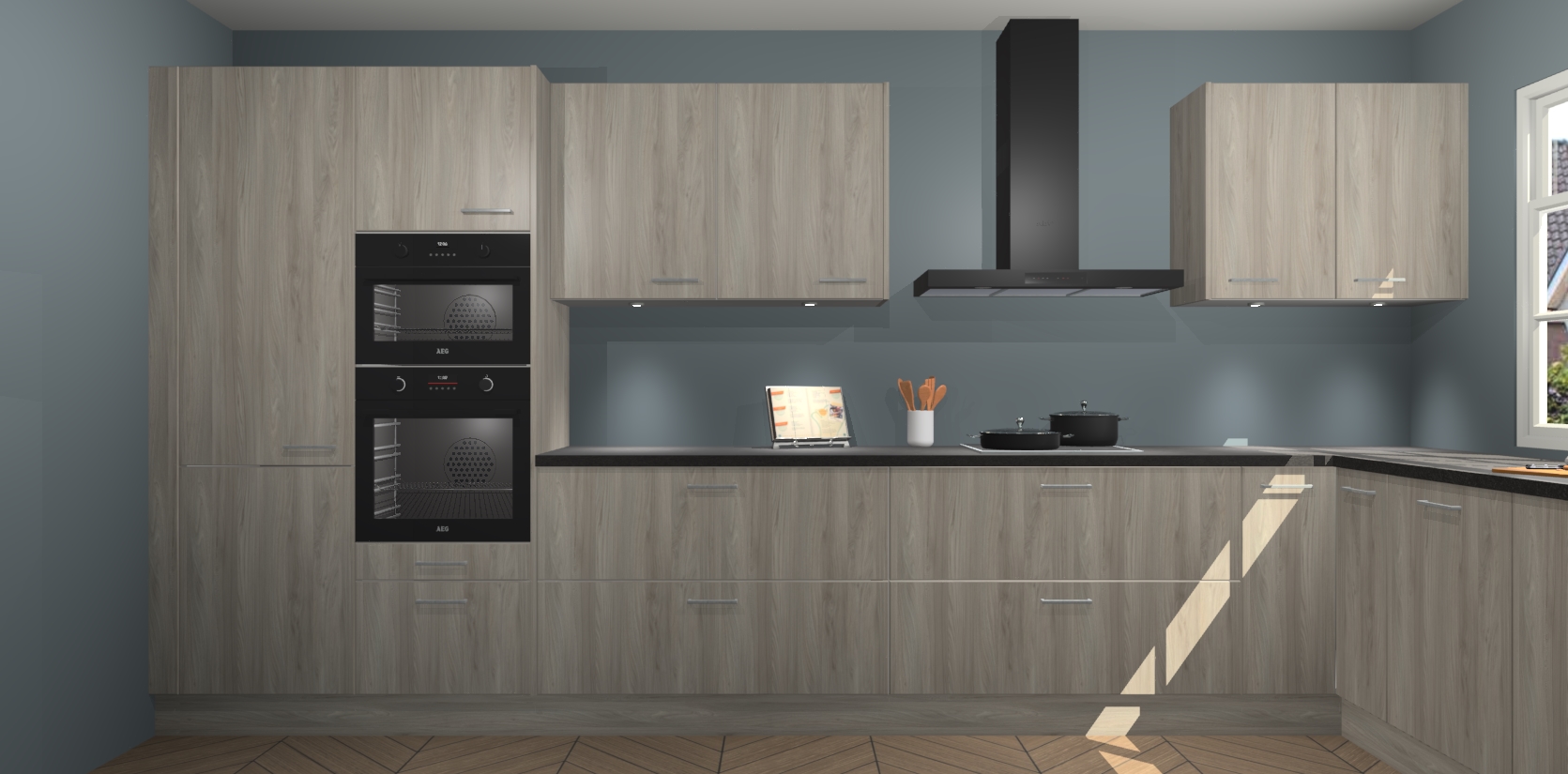 Kom dichtbij de perfecte keuken van uw dromen met de olm keuken Graz. Met een prachtige houtlook en eigentijds ontwerp, straalt deze keuken warmte en sfeer uit. Of u nu liefhebber bent van traditionele of moderne stijlen, er is genoeg ruimte om aan al uw behoeften te voldoen.