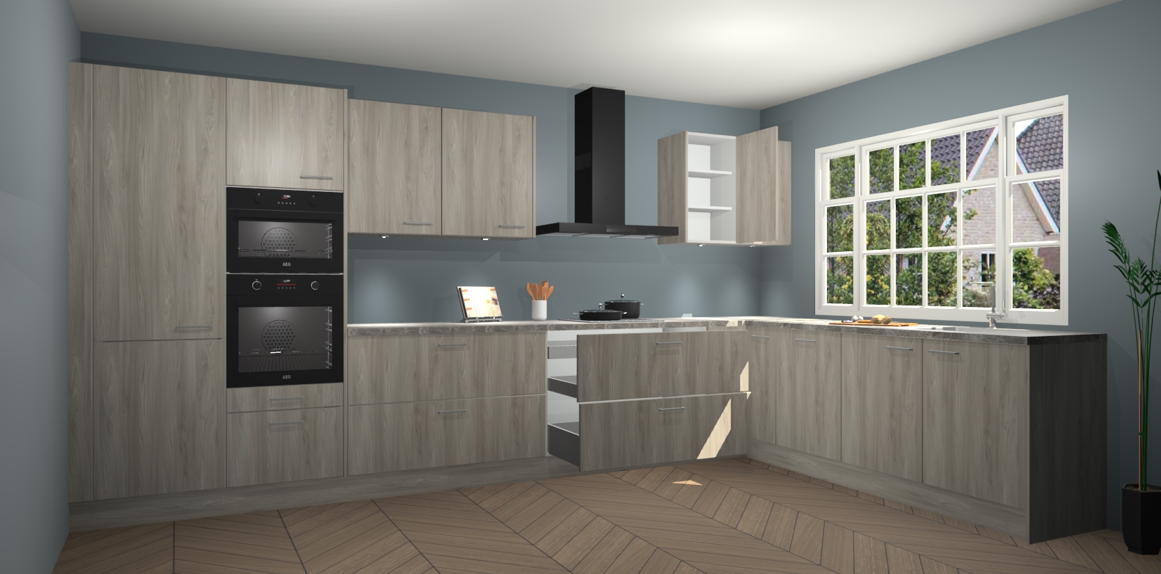 Kom dichtbij de perfecte keuken van uw dromen met de olm keuken Graz. Met een prachtige houtlook en eigentijds ontwerp, straalt deze keuken warmte en sfeer uit. Of u nu liefhebber bent van traditionele of moderne stijlen, er is genoeg ruimte om aan al uw behoeften te voldoen.