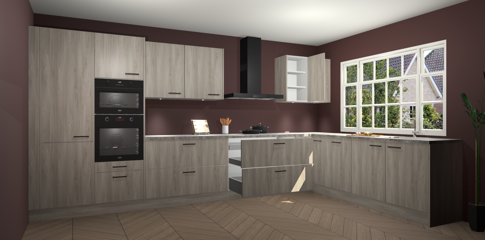 Kom dichtbij de perfecte keuken van uw dromen met de olm keuken Graz. Met een prachtige houtlook en eigentijds ontwerp, straalt deze keuken warmte en sfeer uit. Of u nu liefhebber bent van traditionele of moderne stijlen, er is genoeg ruimte om aan al uw behoeften te voldoen.