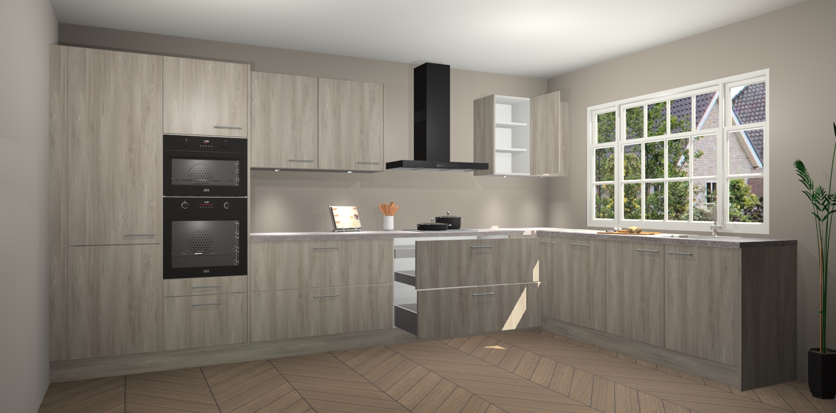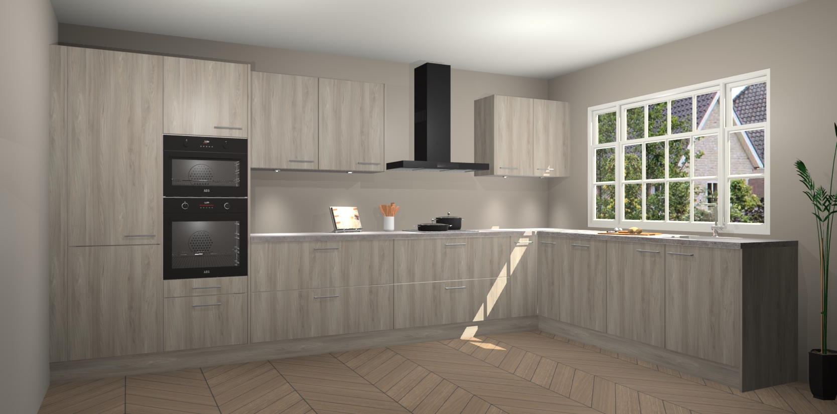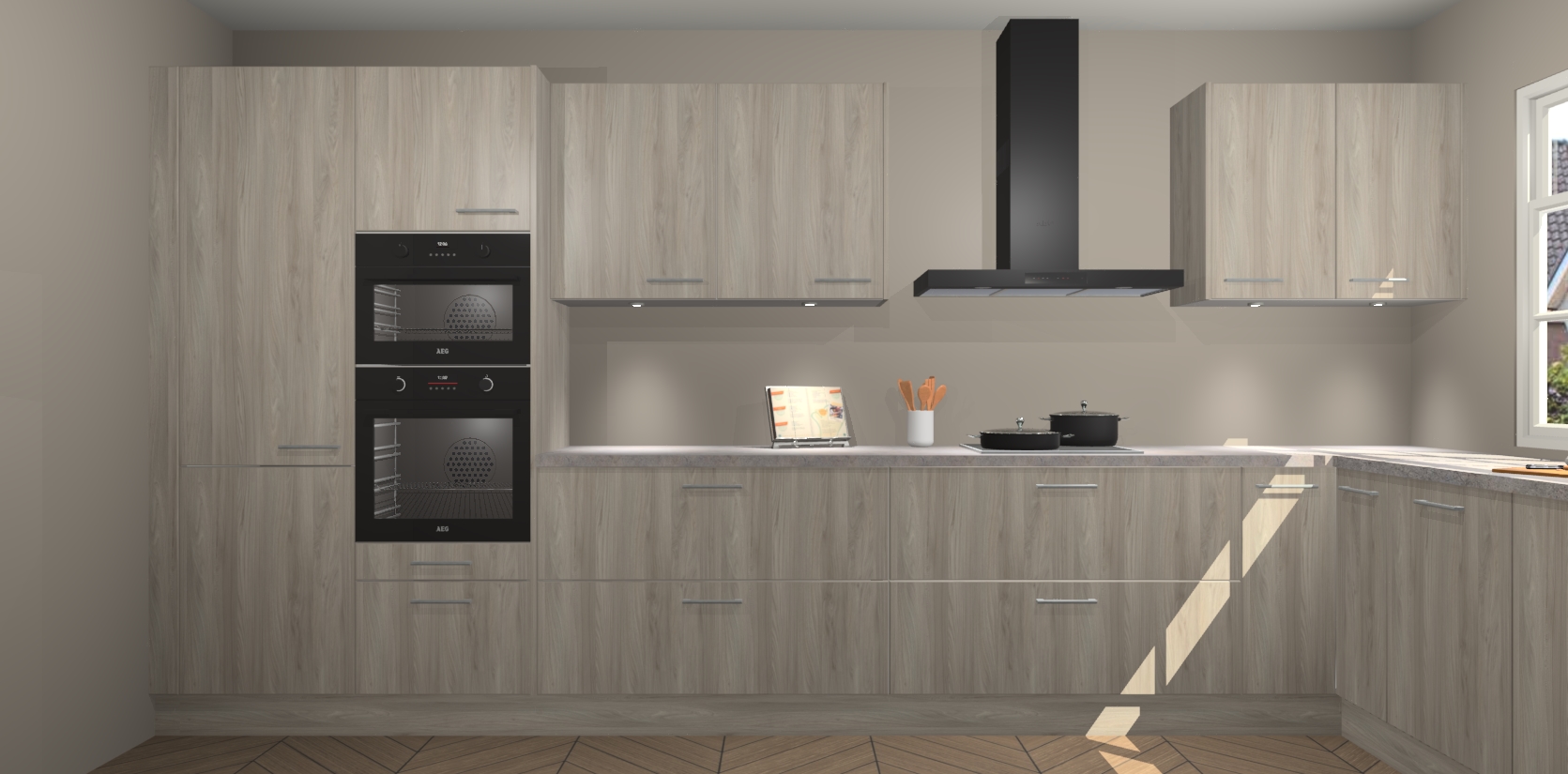 Kom dichtbij de perfecte keuken van uw dromen met de olm keuken Graz. Met een prachtige houtlook en eigentijds ontwerp, straalt deze keuken warmte en sfeer uit. Of u nu liefhebber bent van traditionele of moderne stijlen, er is genoeg ruimte om aan al uw behoeften te voldoen.