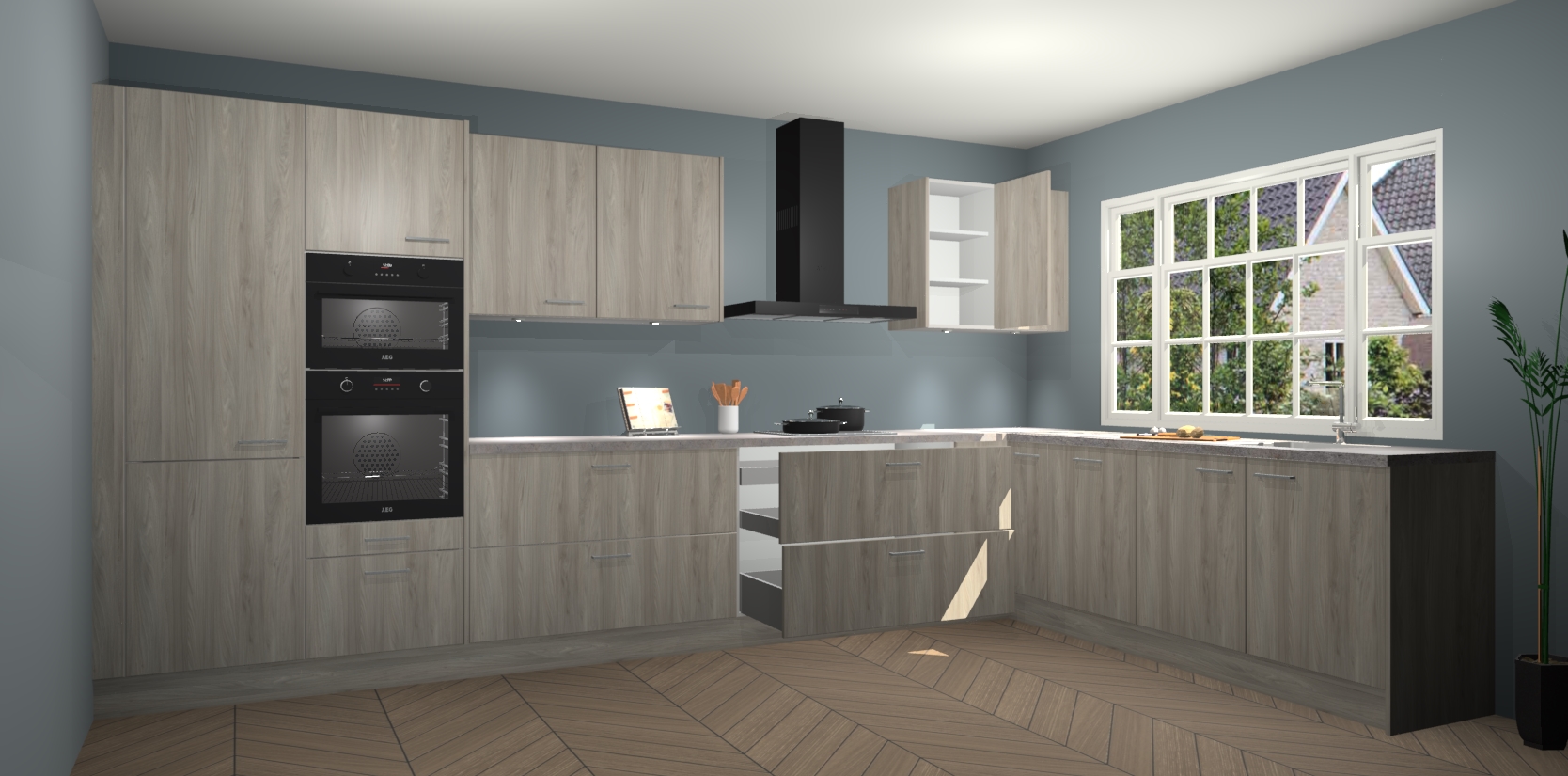 Inclusief plinten, stelpoten en werkblad