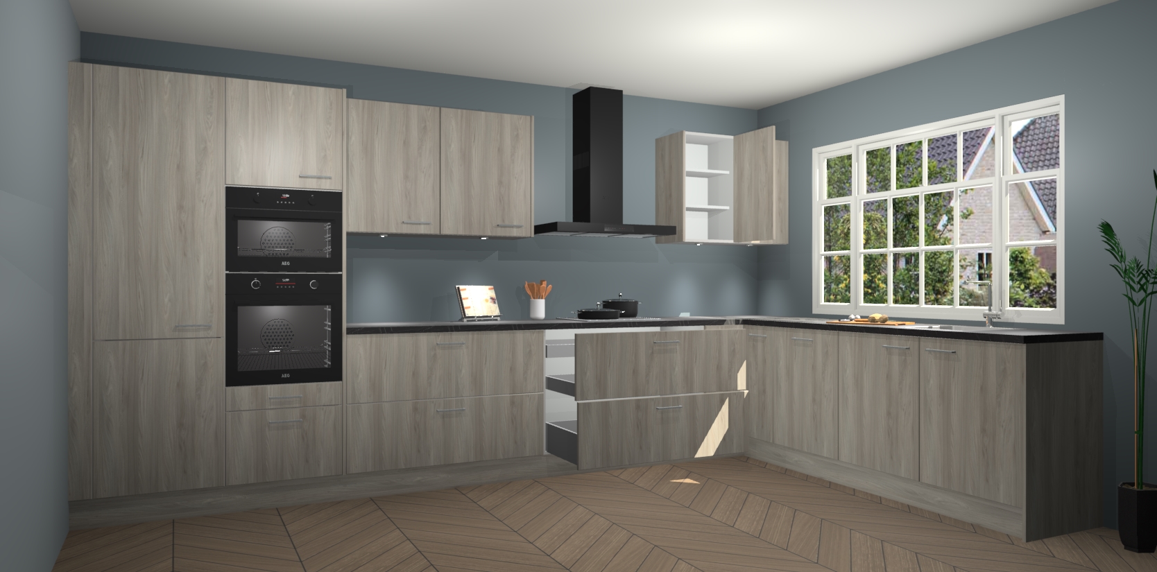 Kom dichtbij de perfecte keuken van uw dromen met de olm keuken Graz. Met een prachtige houtlook en eigentijds ontwerp, straalt deze keuken warmte en sfeer uit. Of u nu liefhebber bent van traditionele of moderne stijlen, er is genoeg ruimte om aan al uw behoeften te voldoen.
