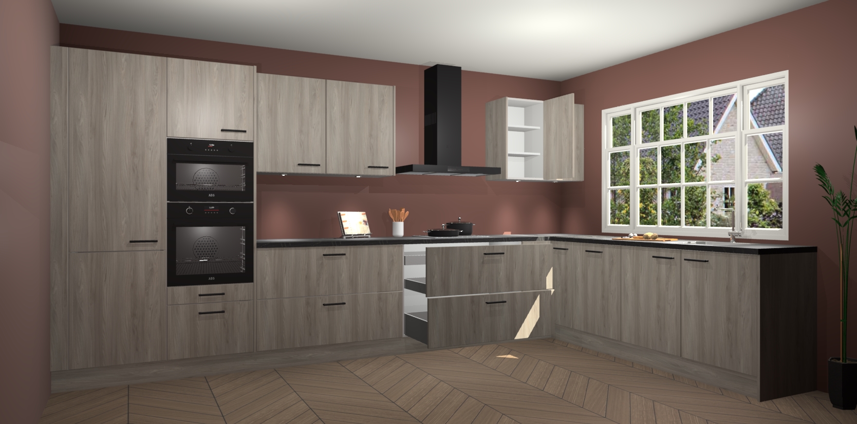 Kom dichtbij de perfecte keuken van uw dromen met de olm keuken Graz. Met een prachtige houtlook en eigentijds ontwerp, straalt deze keuken warmte en sfeer uit. Of u nu liefhebber bent van traditionele of moderne stijlen, er is genoeg ruimte om aan al uw behoeften te voldoen.