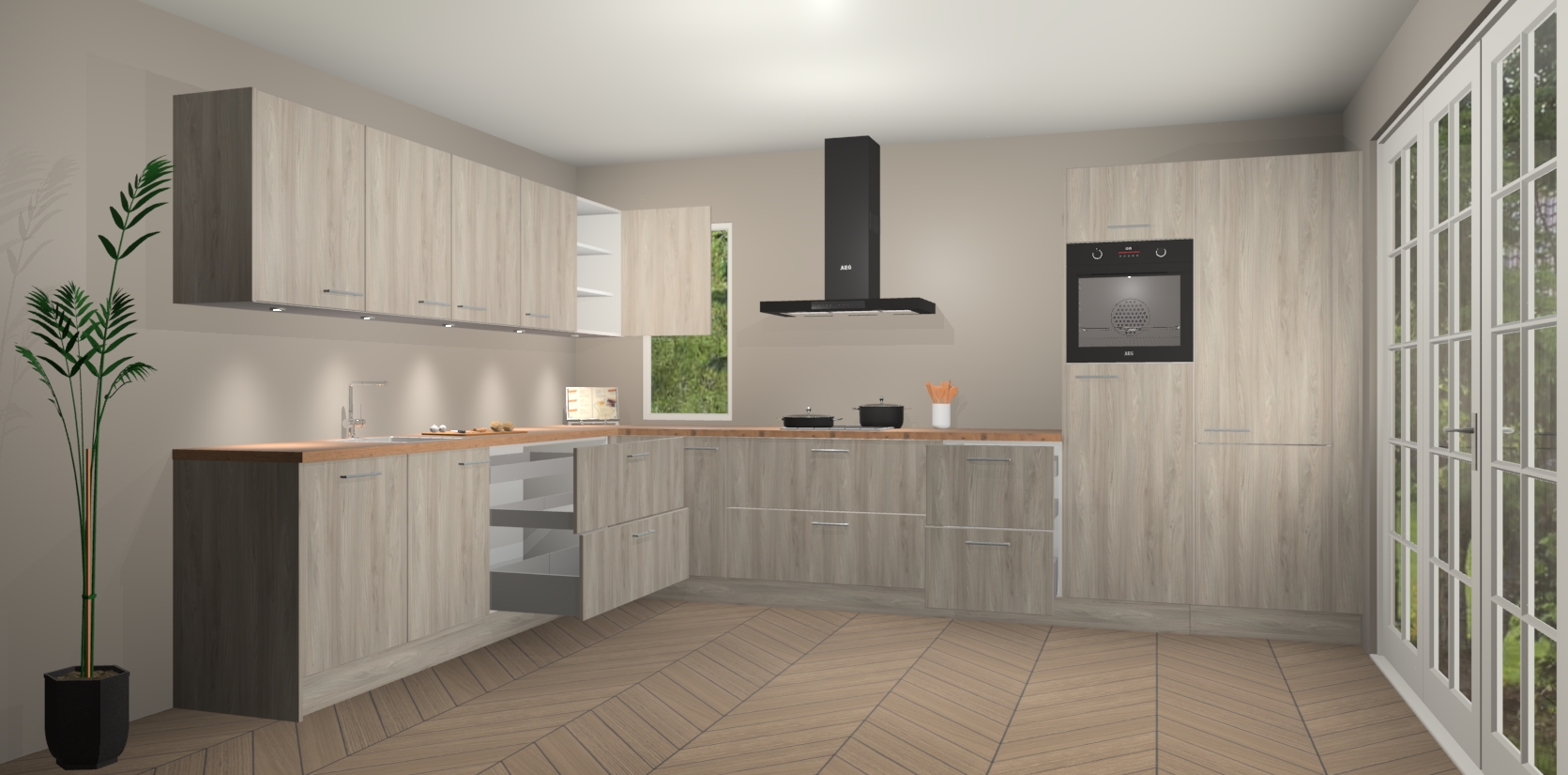 Kom dichtbij de perfecte keuken van uw dromen met de olm keuken Harare. Met een prachtige houtlook en eigentijds ontwerp, straalt deze keuken warmte en sfeer uit. Of u nu liefhebber bent van traditionele of moderne stijlen, er is genoeg ruimte om aan al uw behoeften te voldoen.