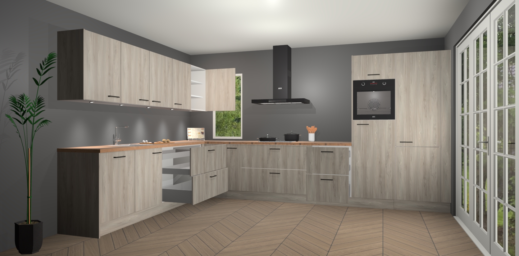 Kom dichtbij de perfecte keuken van uw dromen met de olm keuken Harare. Met een prachtige houtlook en eigentijds ontwerp, straalt deze keuken warmte en sfeer uit. Of u nu liefhebber bent van traditionele of moderne stijlen, er is genoeg ruimte om aan al uw behoeften te voldoen.