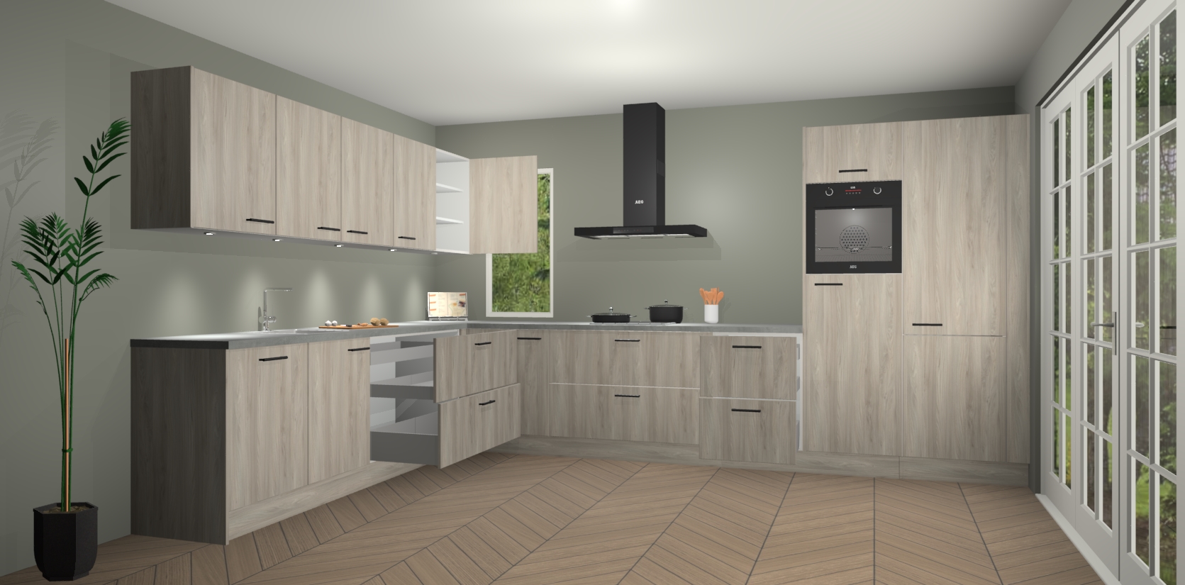 Kom dichtbij de perfecte keuken van uw dromen met de olm keuken Harare. Met een prachtige houtlook en eigentijds ontwerp, straalt deze keuken warmte en sfeer uit. Of u nu liefhebber bent van traditionele of moderne stijlen, er is genoeg ruimte om aan al uw behoeften te voldoen.