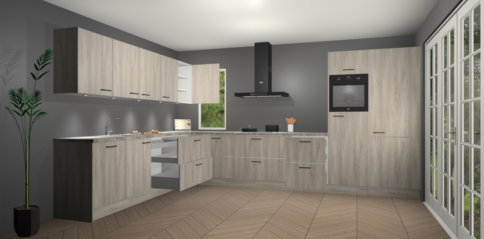 Kom dichtbij de perfecte keuken van uw dromen met de olm keuken Harare. Met een prachtige houtlook en eigentijds ontwerp, straalt deze keuken warmte en sfeer uit. Of u nu liefhebber bent van traditionele of moderne stijlen, er is genoeg ruimte om aan al uw behoeften te voldoen.