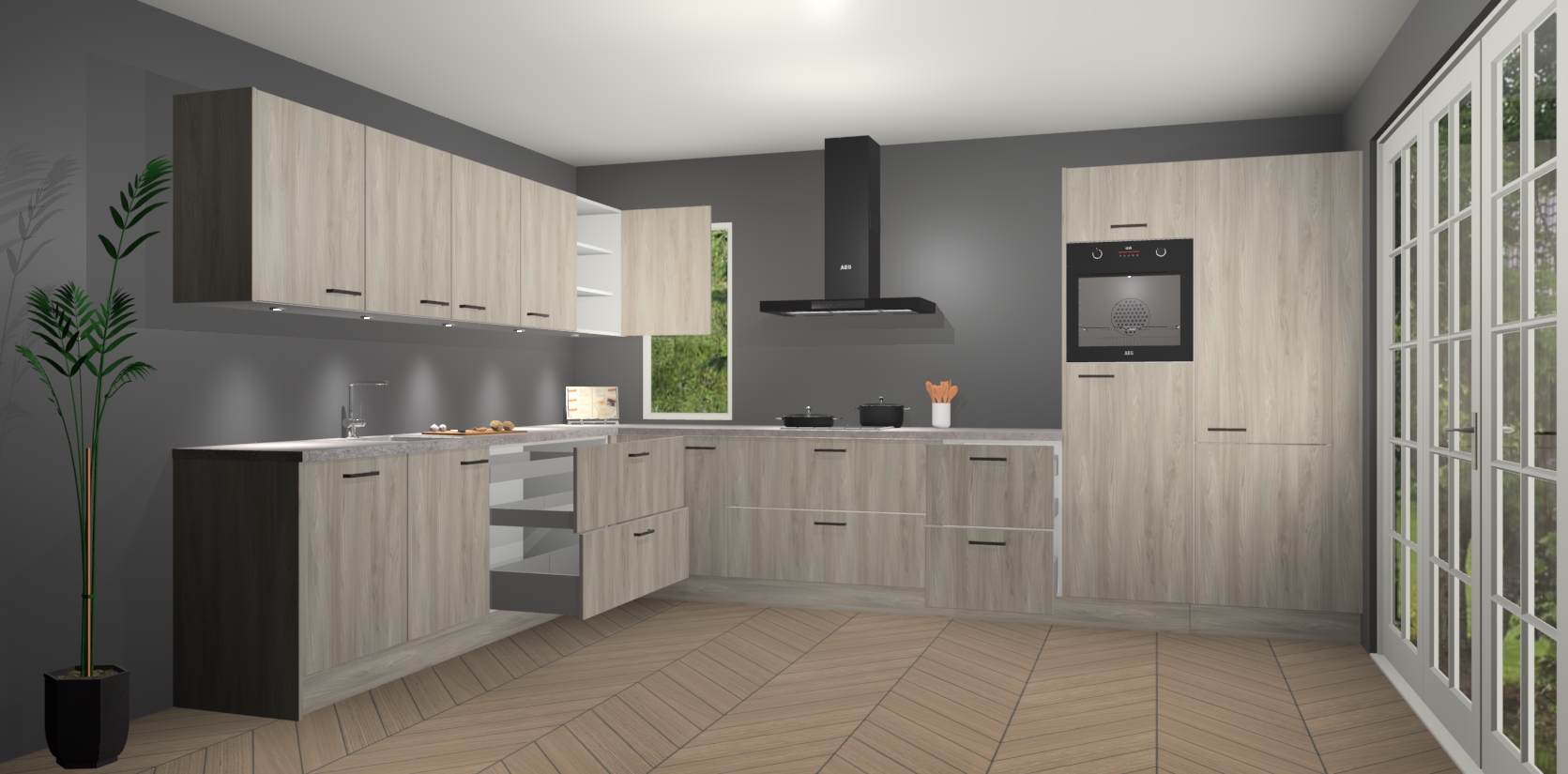 Heeft u nog apparatuur nodig? Geen probleem: de olm keuken Harare bevat vijf ingebouwde apparaten - een oven, inductiekookplaat, afzuigkap, vaatwasser en koelkast - die gemakkelijk kunnen worden bijgewerkt naar AEG na bestelling. En als dat nog niet genoeg is; onze kasten worden pre-geassembleerd geleverd en zijn verkrijgbaar tegen een vastgeroeste lage prijs! U hoeft nooit meer te zoeken naar goede kwaliteit en service want onze producten hebben echt Duitse kwaliteit.