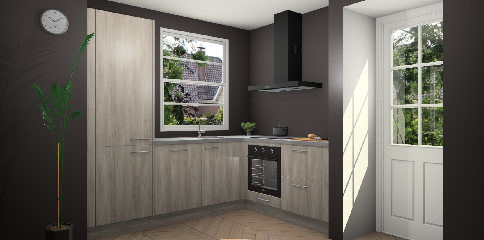Wilt u een echte aanwinst voor uw keuken, maar bent u op zoek naar iets specialers dan de standaardkeukens? Kies dan voor de Olm keuken Harbin! Dit prachtige hoekkeukenontwerp geeft u alle ruimte om optimaal te genieten van heerlijk koken. Het uitmuntende afwerkingsniveau, de fraaie houtstructuur en de sfeervolle zwarte grepen maken van de Olm keuken Harbin de perfecte keuze voor zowel enthousiaste thuiskoks als design-minded interieurliefhebbers.