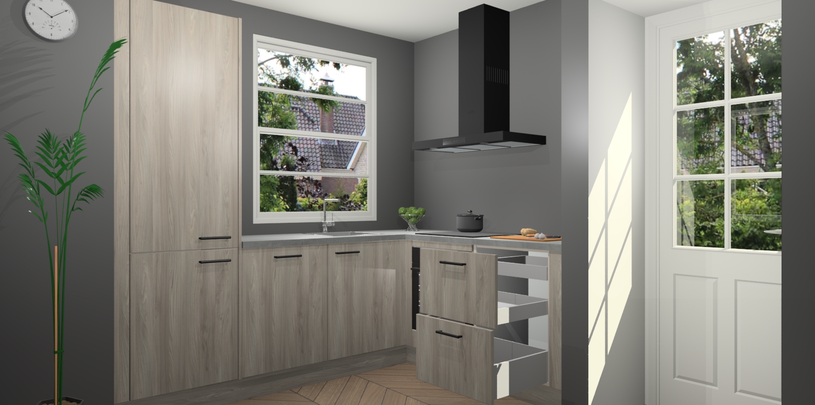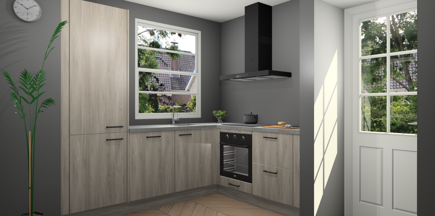 Wilt u een echte aanwinst voor uw keuken, maar bent u op zoek naar iets specialers dan de standaardkeukens? Kies dan voor de Olm keuken Harbin! Dit prachtige hoekkeukenontwerp geeft u alle ruimte om optimaal te genieten van heerlijk koken. Het uitmuntende afwerkingsniveau, de fraaie houtstructuur en de sfeervolle zwarte grepen maken van de Olm keuken Harbin de perfecte keuze voor zowel enthousiaste thuiskoks als design-minded interieurliefhebbers.