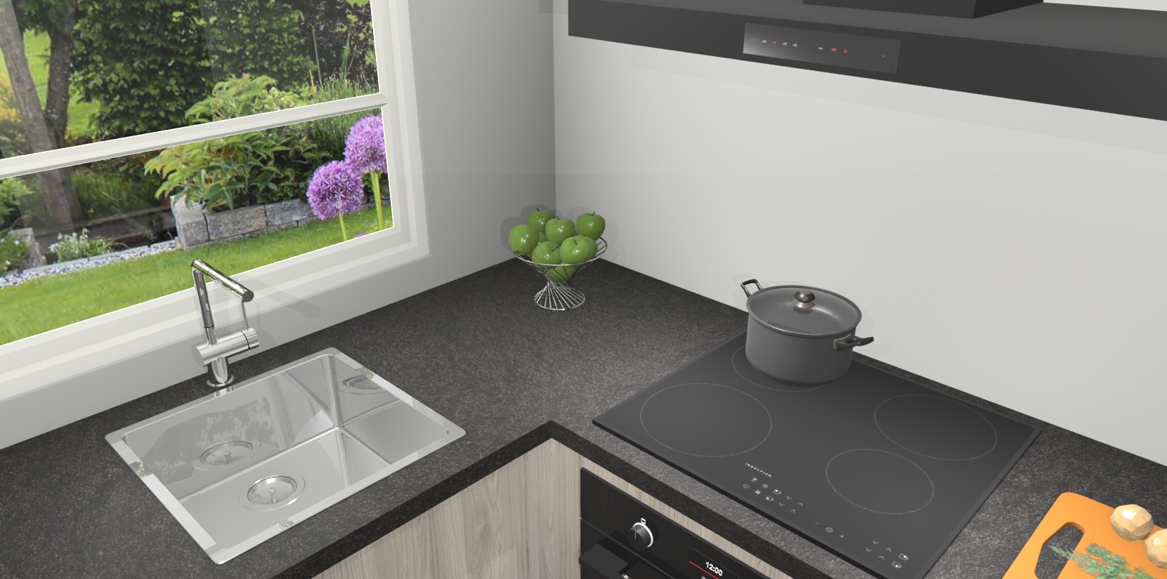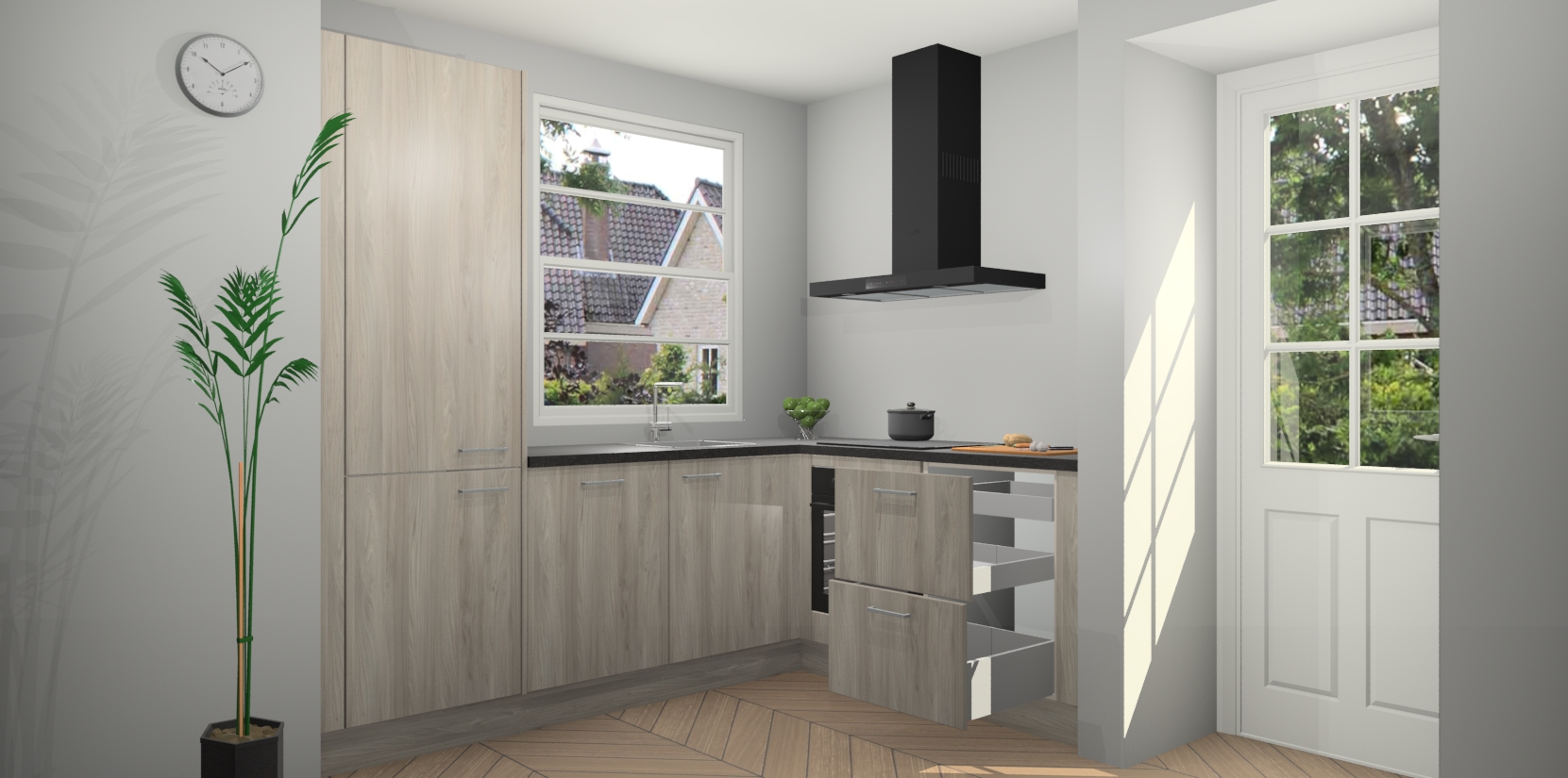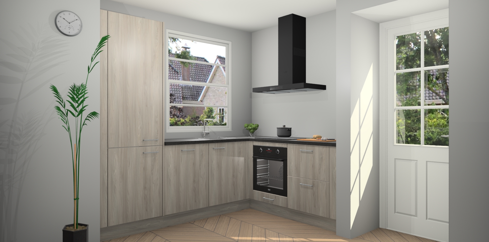 Wilt u een echte aanwinst voor uw keuken, maar bent u op zoek naar iets specialers dan de standaardkeukens? Kies dan voor de Olm keuken Harbin! Dit prachtige hoekkeukenontwerp geeft u alle ruimte om optimaal te genieten van heerlijk koken. Het uitmuntende afwerkingsniveau, de fraaie houtstructuur en de sfeervolle zwarte grepen maken van de Olm keuken Harbin de perfecte keuze voor zowel enthousiaste thuiskoks als design-minded interieurliefhebbers.